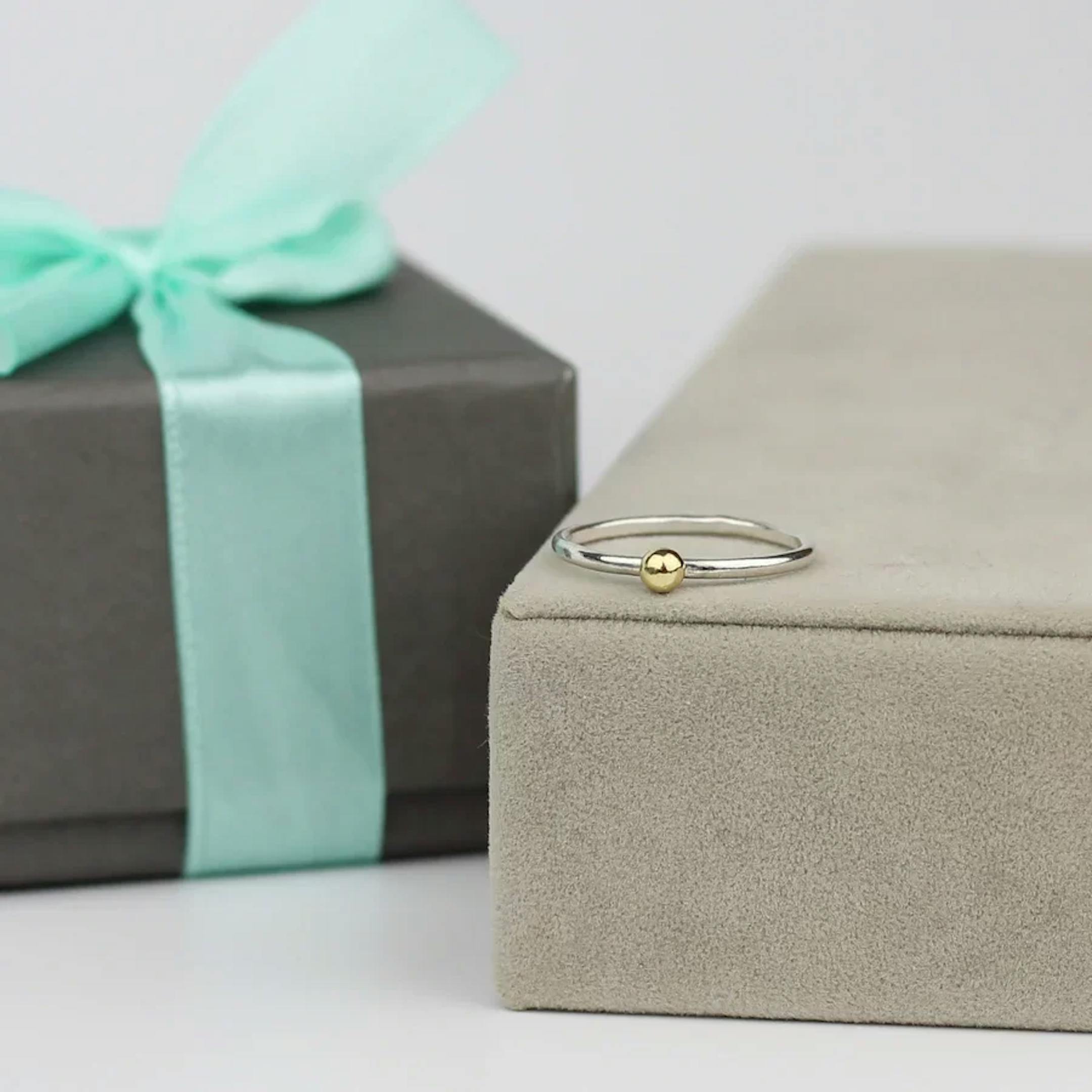 Mustard Seed Stacking Ring | Sterling Silver & 9ct Gold