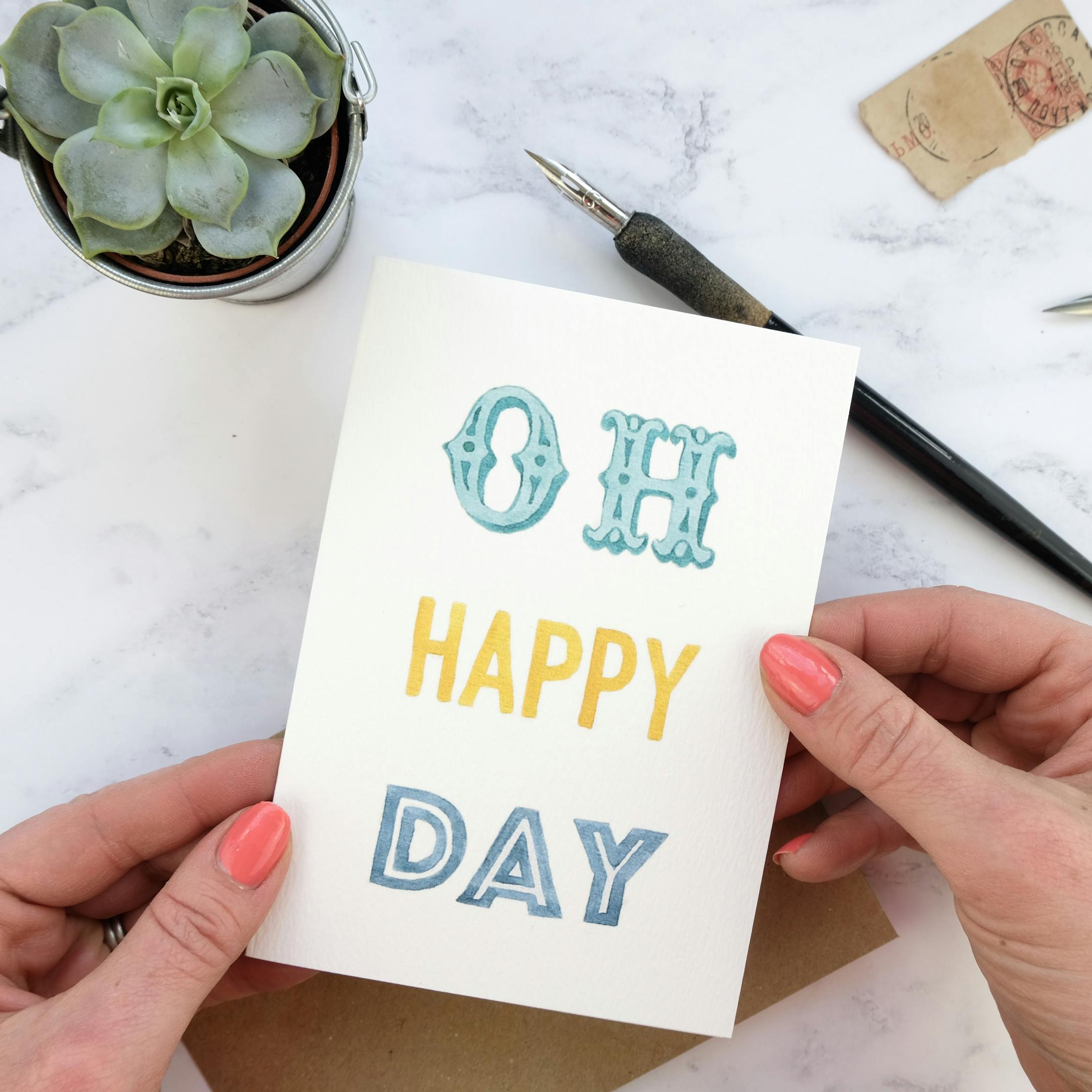 -Printed from my original hand lettered watercolour painting on to luxury 300gsm textured card