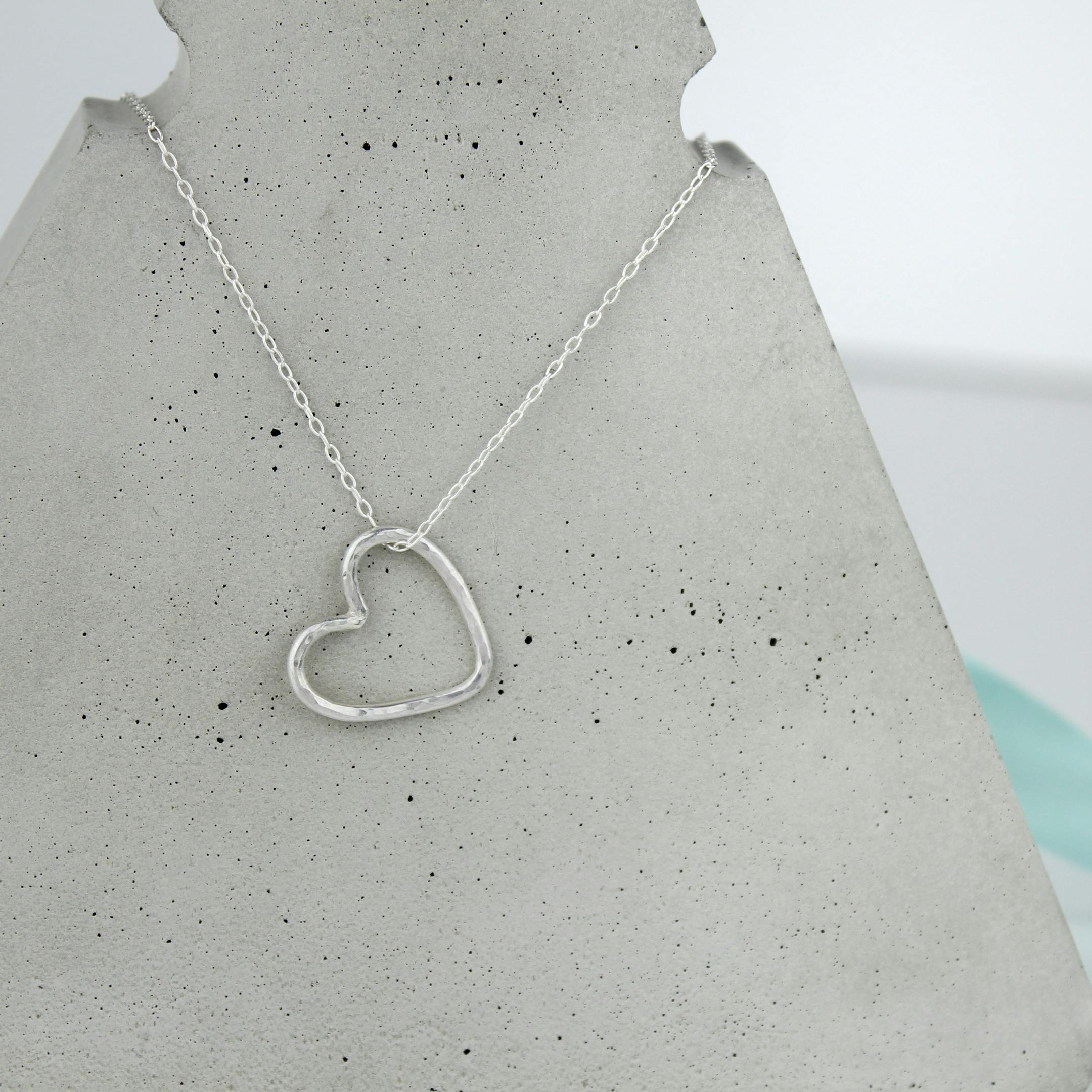 Simple and classic, this lovely heart necklace is made from recycled sterling silver wire and hand-formed into an open-heart shape - making each one wonderfully unique! Finished with my signature hammered texture which catches the light beautifully, it’s sure to become a firm favourite in her jewellery collection.