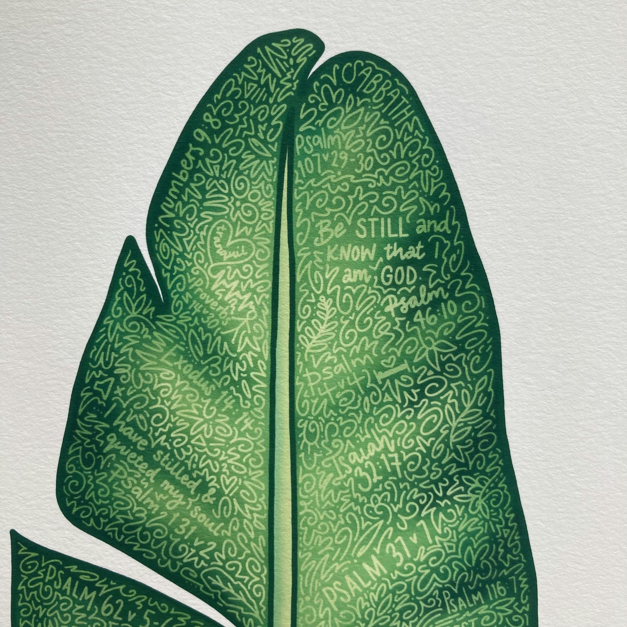 Peace and Stillness Banana Leaf Doodle Scripture A3 Prints