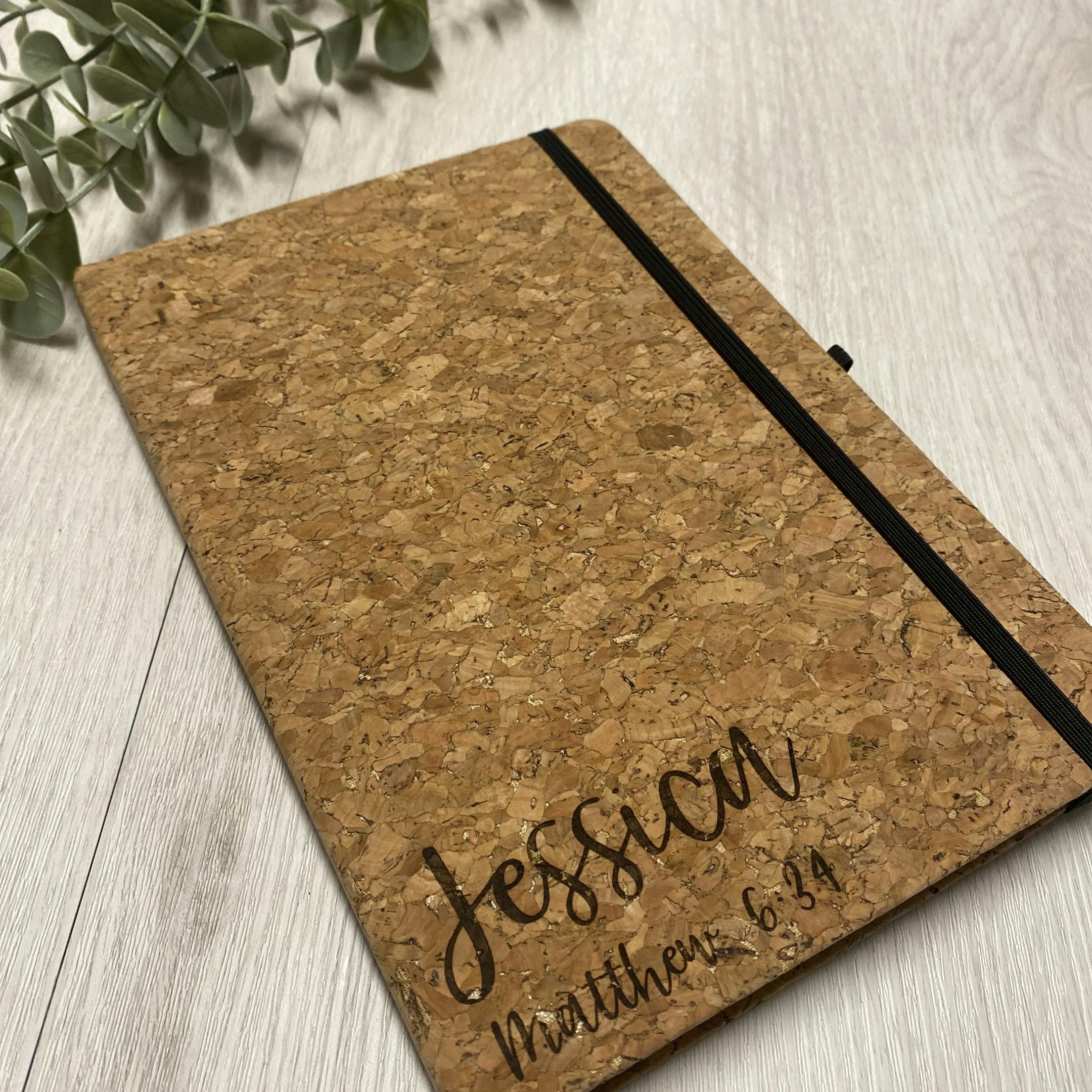 These A5 cork notebooks can be personalised with a name a bible verse reference! The perfect present