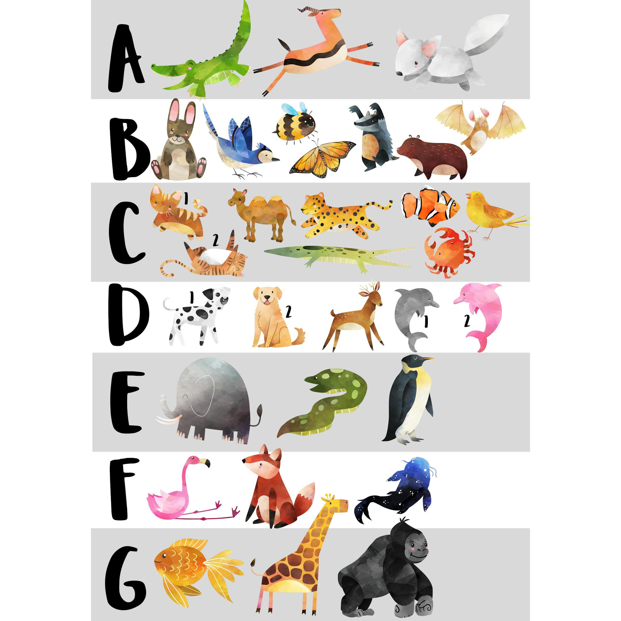 Decorate your home, bedroom or nursery with this beautiful and cheerful A-Z animal name print, or give as a perfect gift to a friend or loved one for a birthday, new baby gift, christening or dedication.