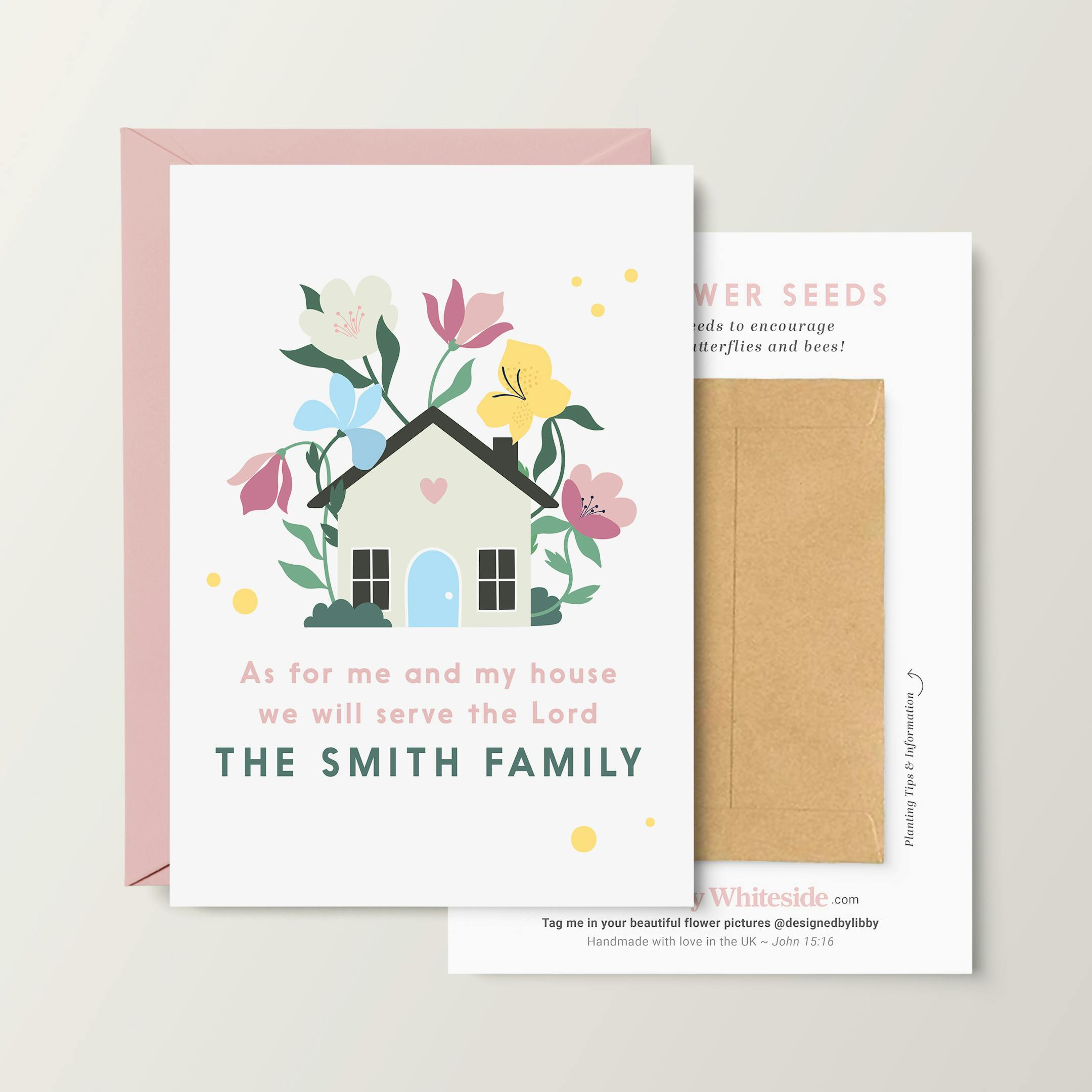 Beautiful A6 personalised quality greeting card, with a brown kraft envelope containing wildflower seeds. Card also comes in a pink envelope.