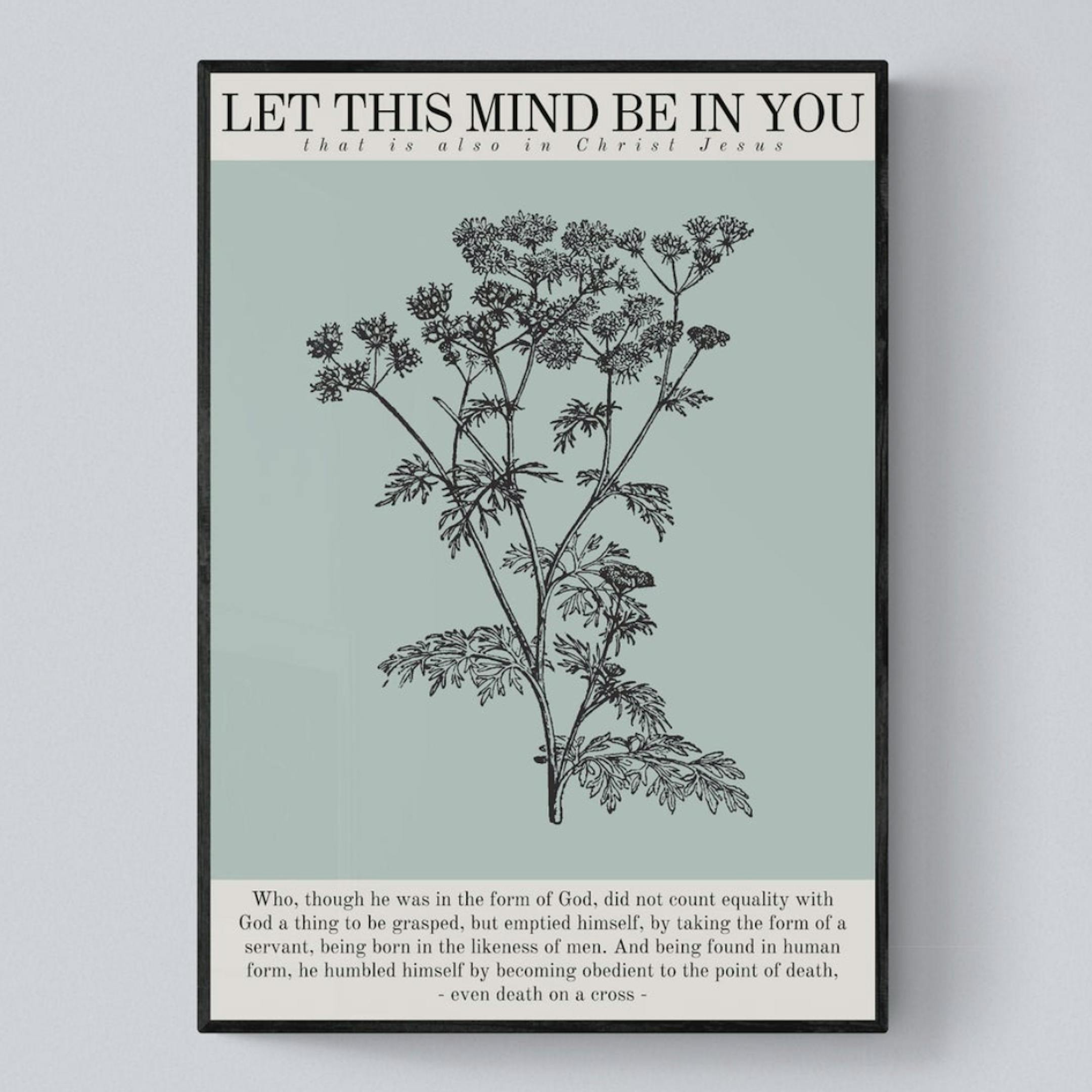 Modern Botanical Christian Typography Print "Let this mind be in you... even the death of a cross" Philippians 2