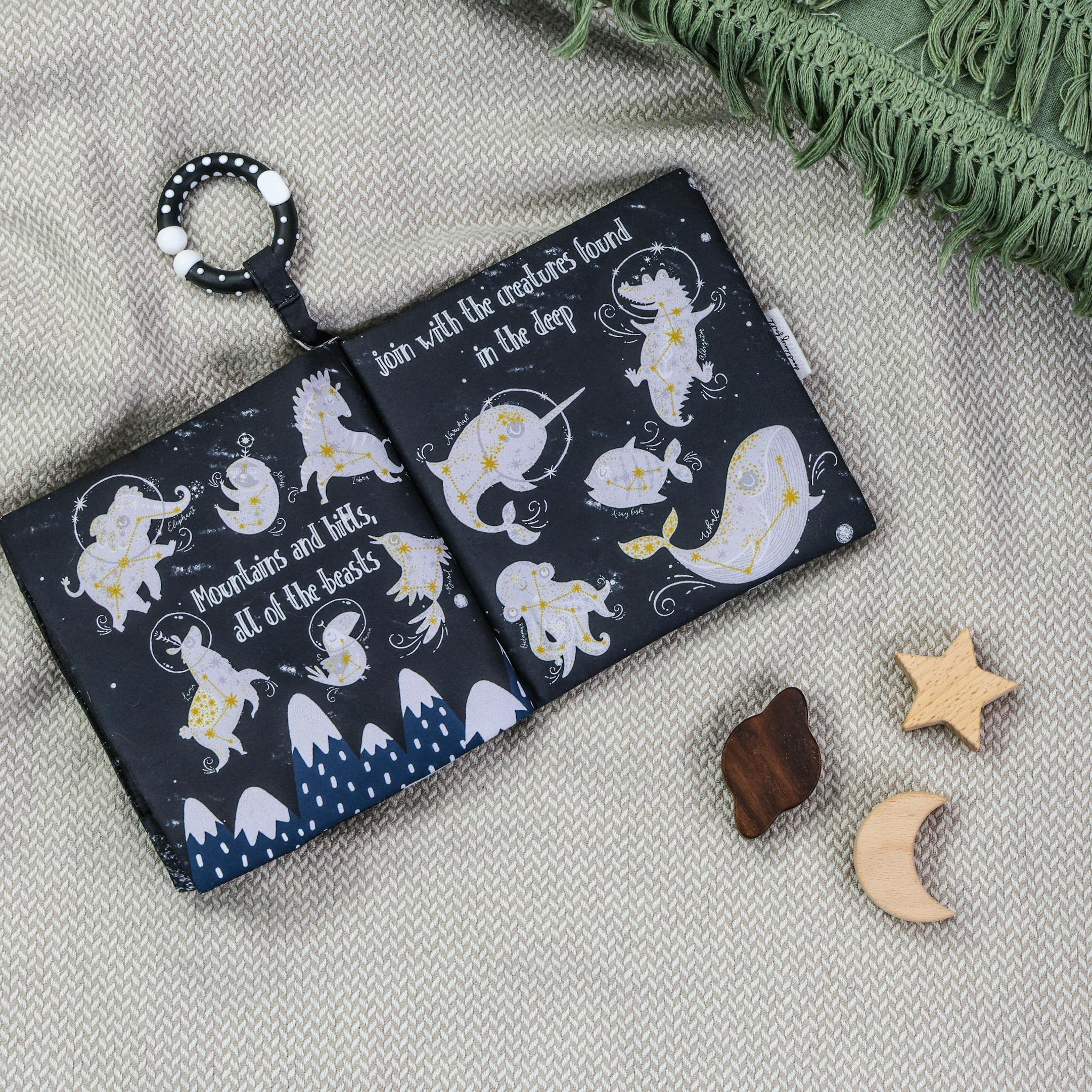 This book features soft crinkle pages with black white and yellow graphics. Perfect for newborns who don’t see in colour until around 4 months old. Based on psalm 148:13 it’s a lovely way to teach your little one all about worship and the universe. Plus, why not learn the names of the plants, or count the stars. A baby book designed for my little one for yours to enjoy too.