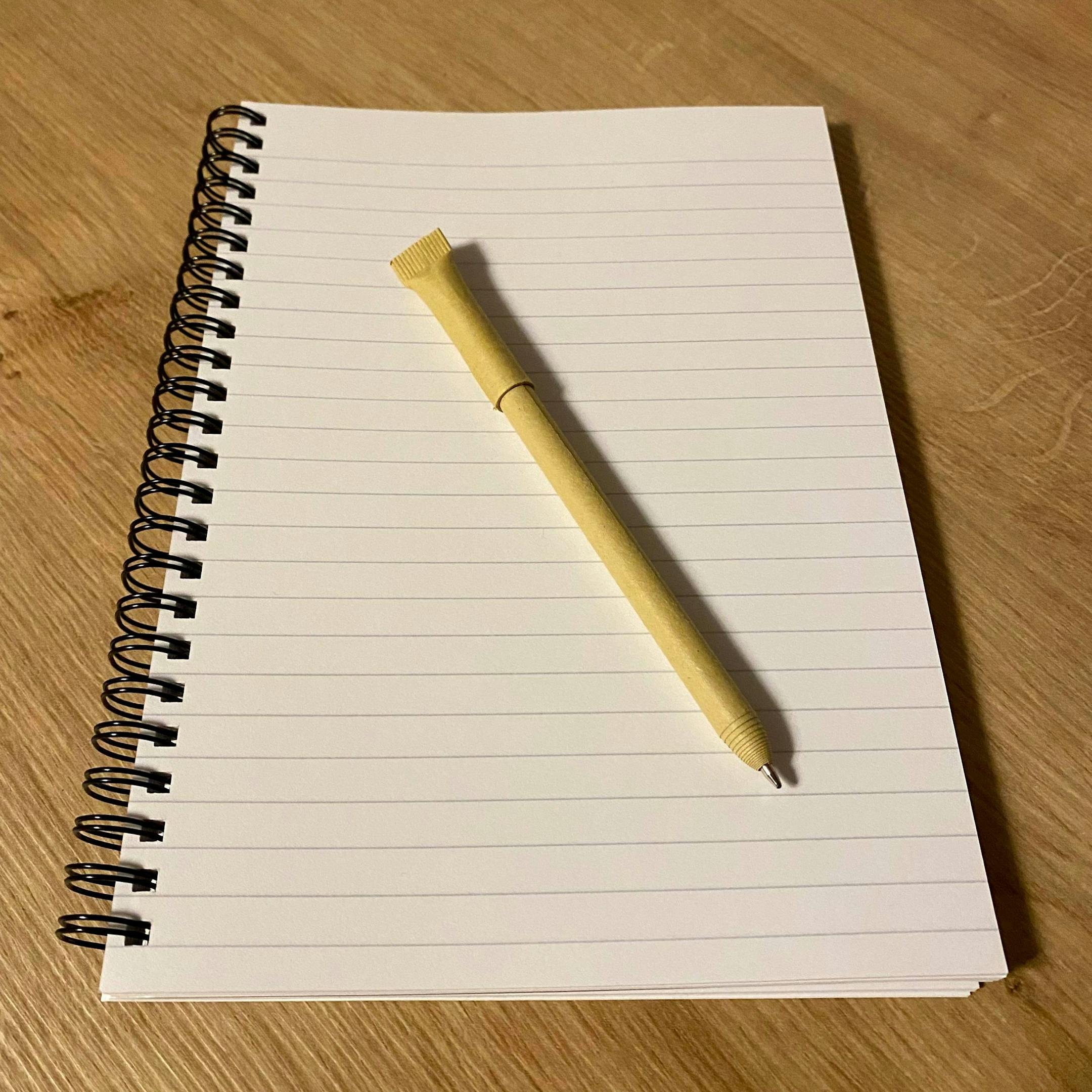 An A5 lined noted book with soft back book with;