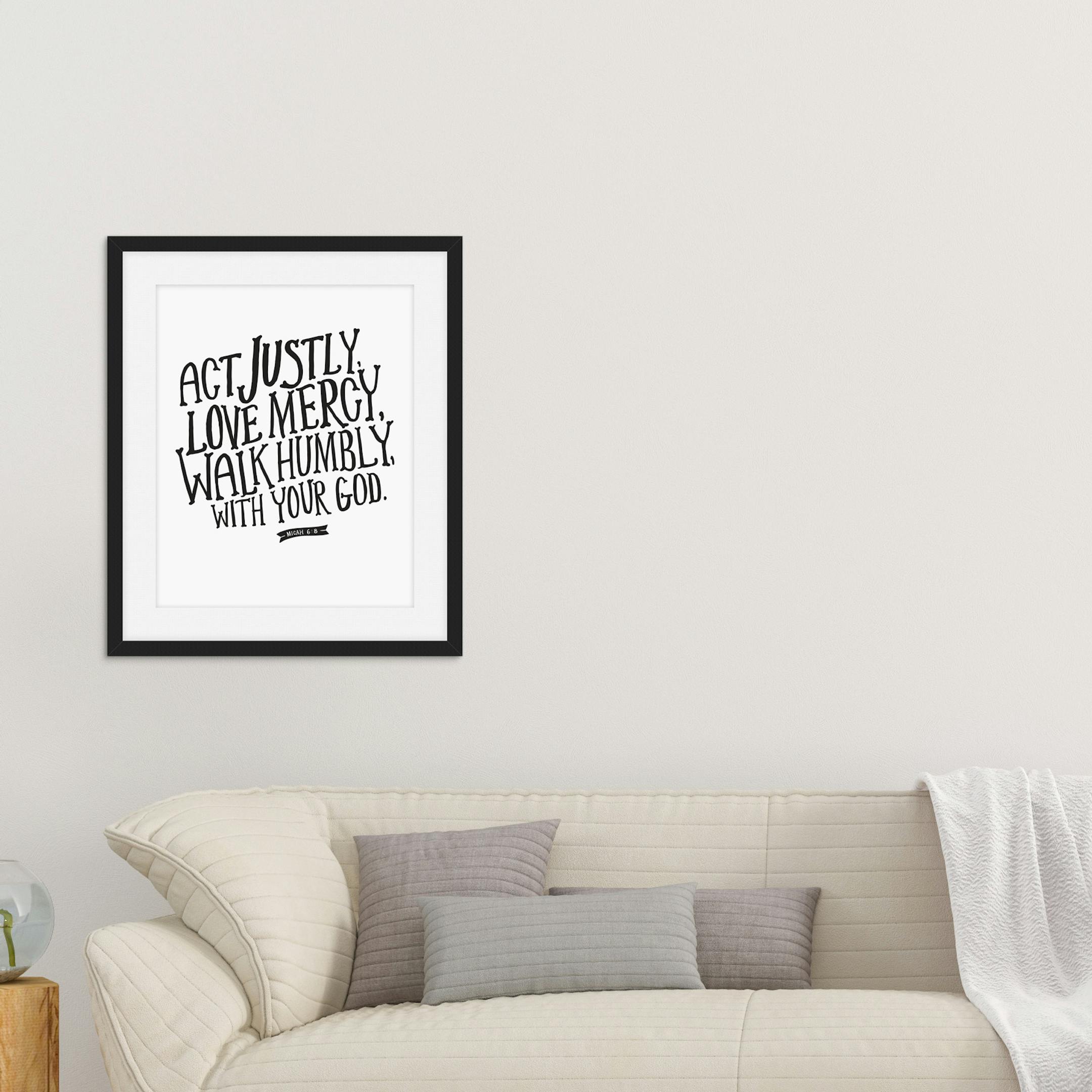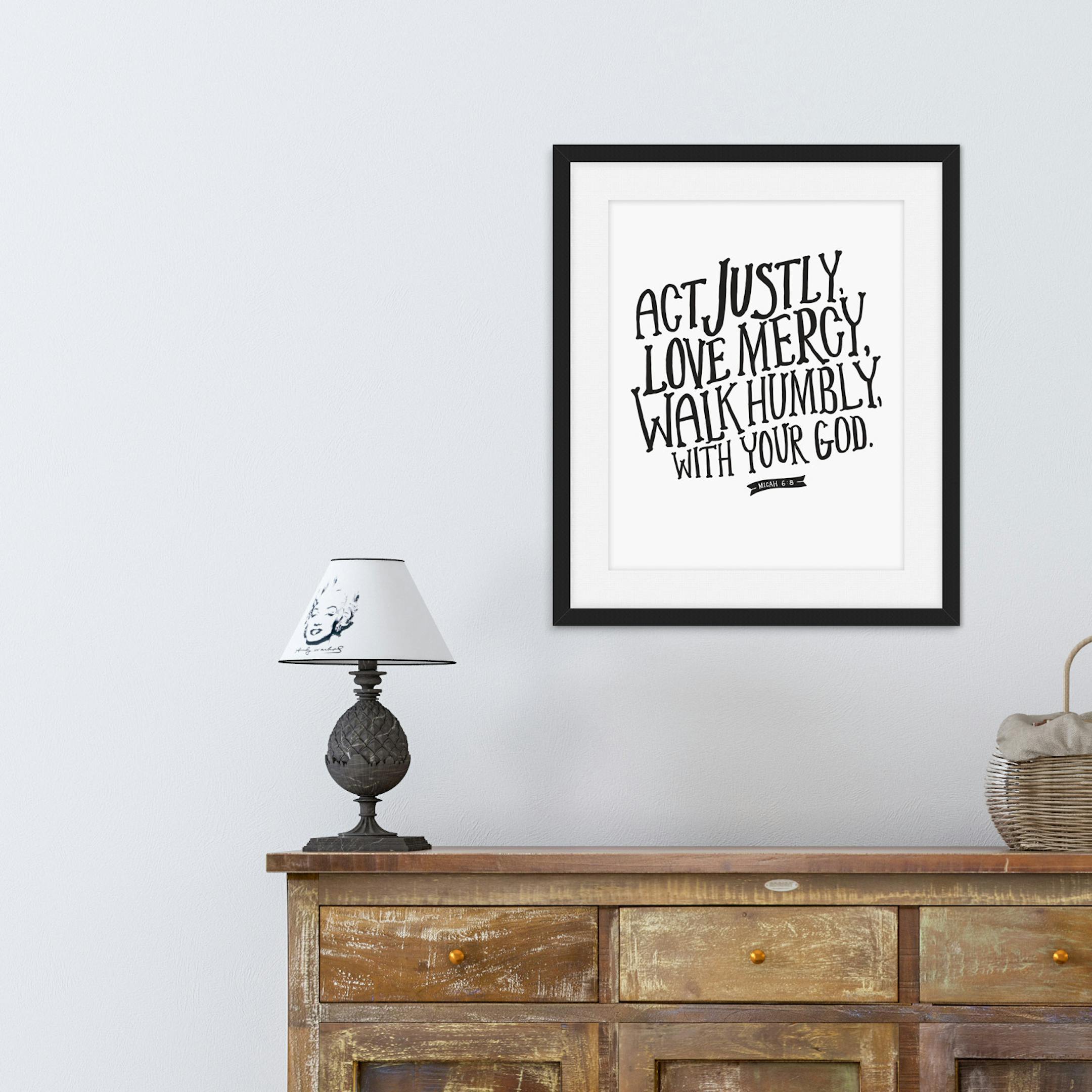 Printable artwork inspired by Micah 6:8 Act Justly, Love Mercy, Walk Humbly