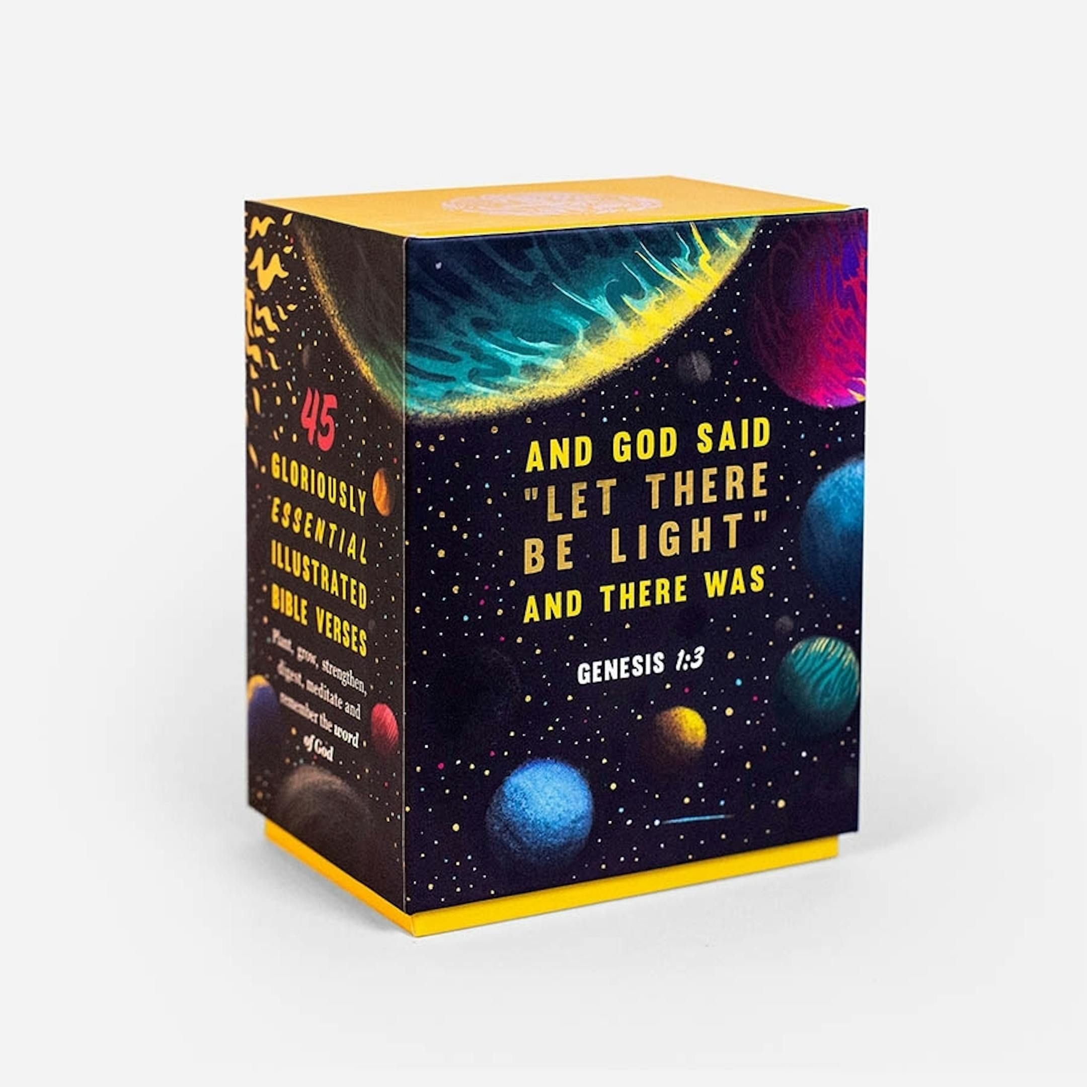 Each pack contains forty-five beautifully illustrated Bible verses and a magnetic wooden stand.