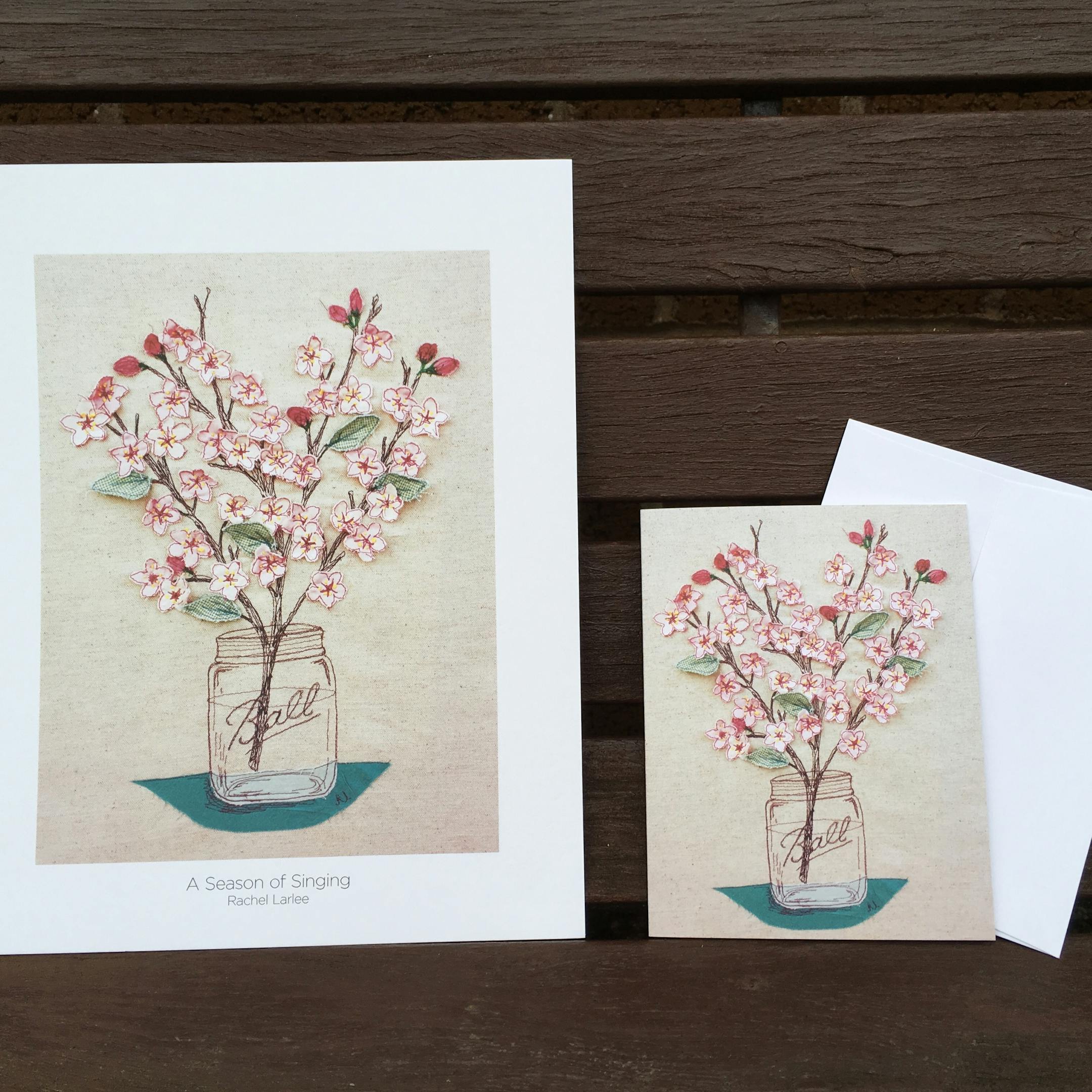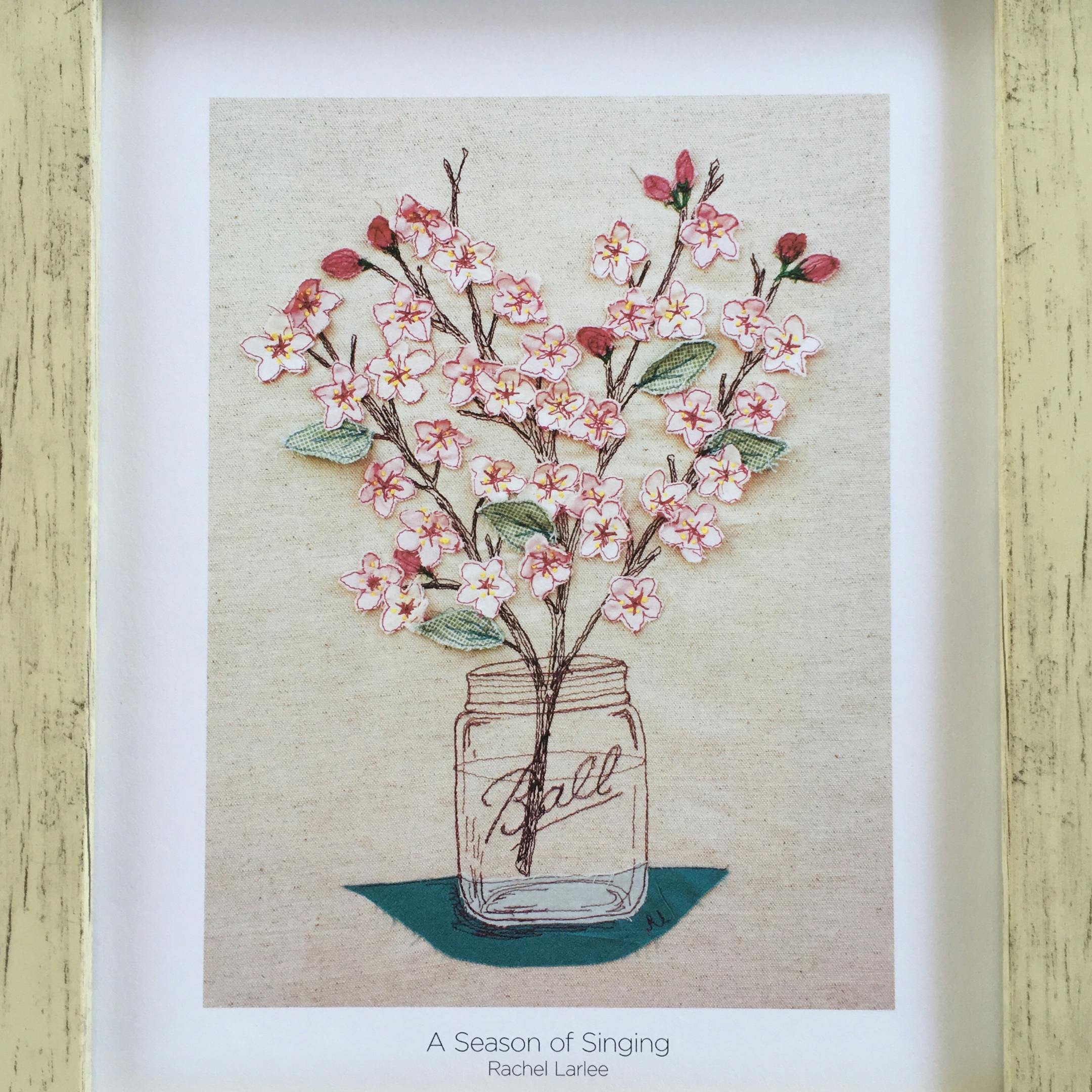 Season of Singing is a 8 x10 print of an original textile embroidery piece. This was inspired by Song of Solomon 2v12 “...flowers appear on the earth: the seaso