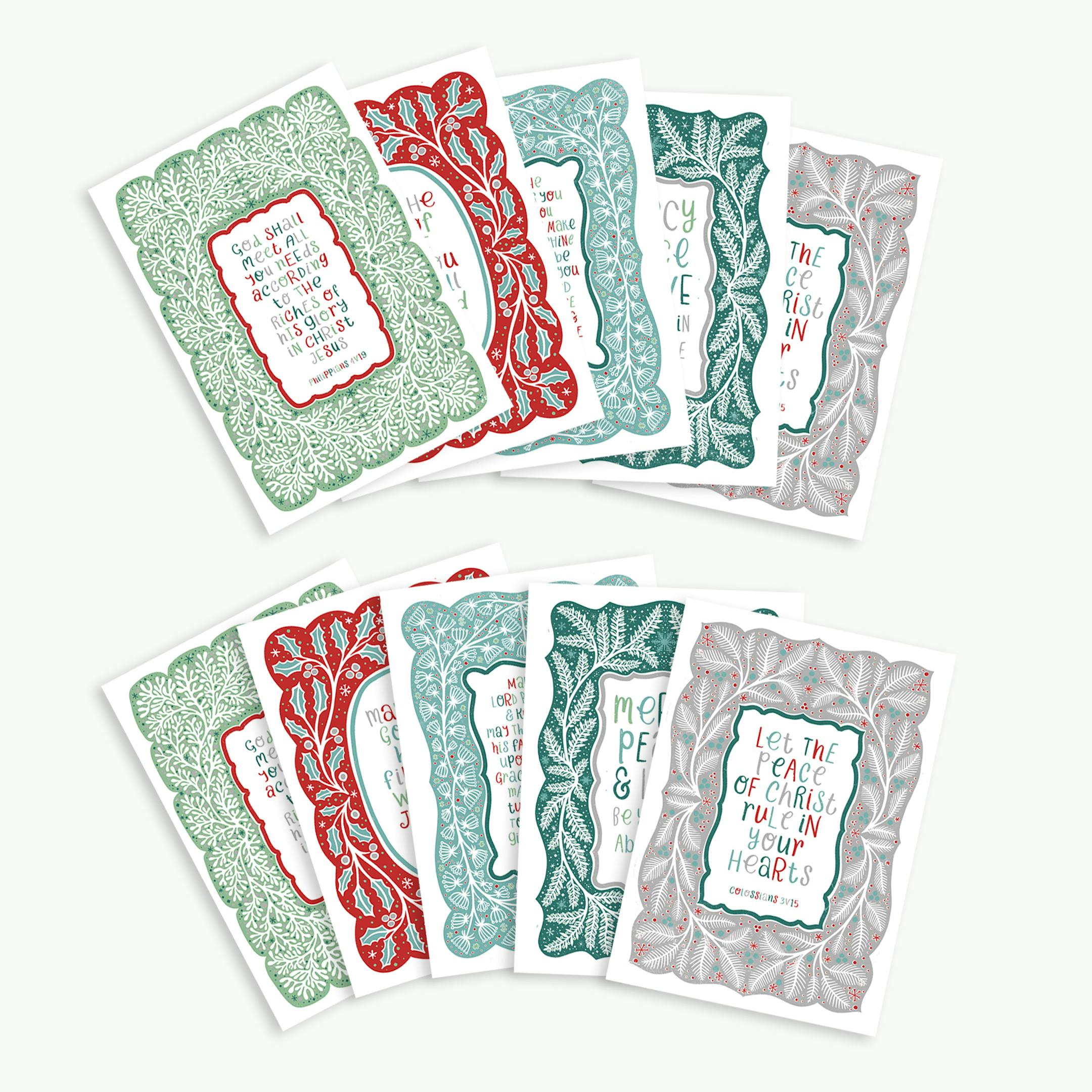 A collection of seasonal Scripture within a variety of Christmas fauna.