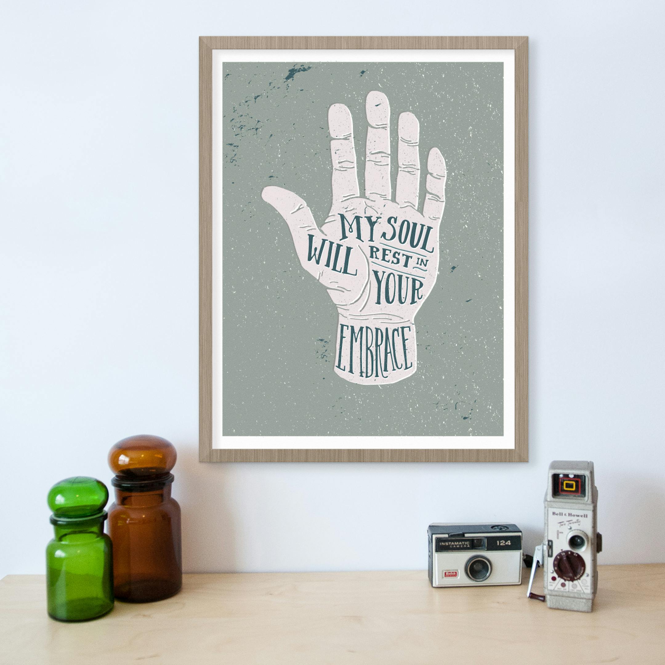 My Soul Will Rest In Your Embrace, Hillsong. A hand drawn, illustrated art print inspired by the Hillsong lyrics.