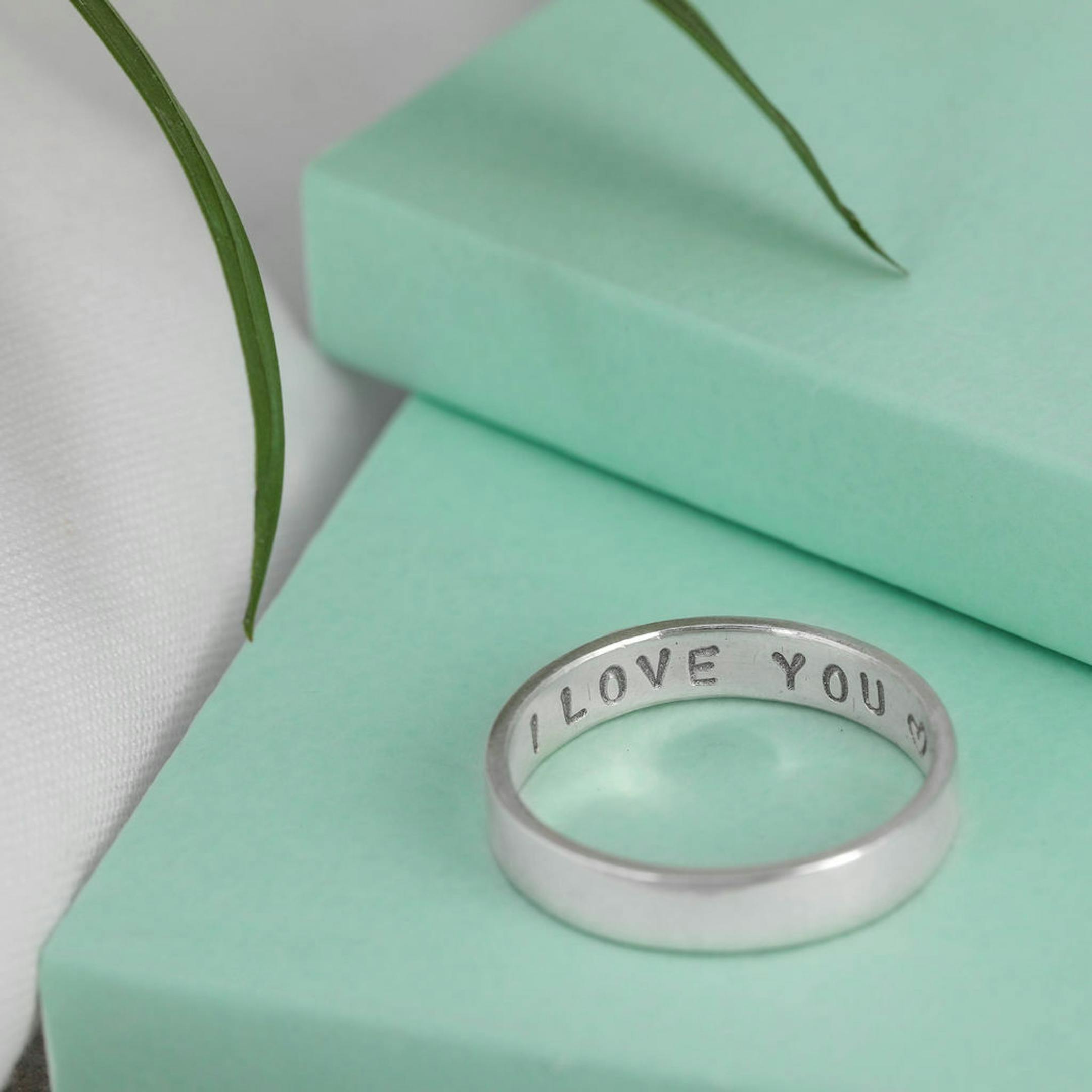 Whether you’d like a special date, a precious word, or something completely unique, this ring makes a wonderful gift – only the recipient will know what it says inside. It can be worn solo for a simple understated look, but would also sit perfectly in a stack with other silver rings.