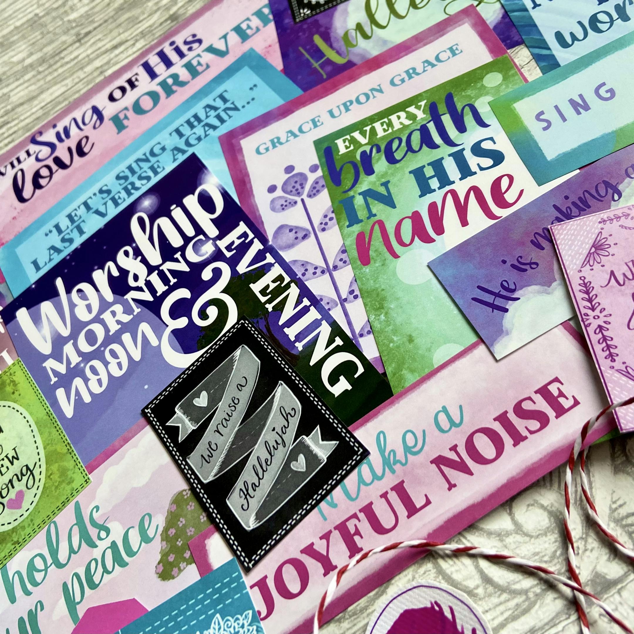 ‘Sing of HIS love” bible journalling & scrapbook kit, featuring vibrant imagery and scripture focusing on the love and joy of worship.