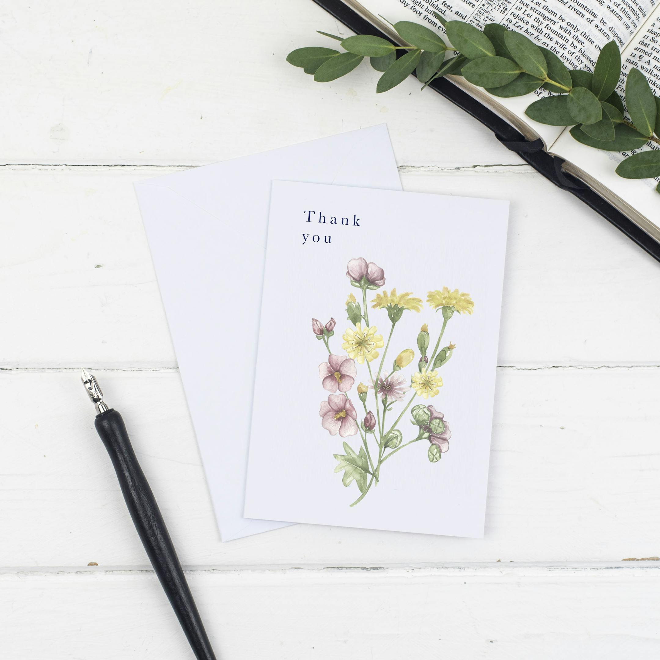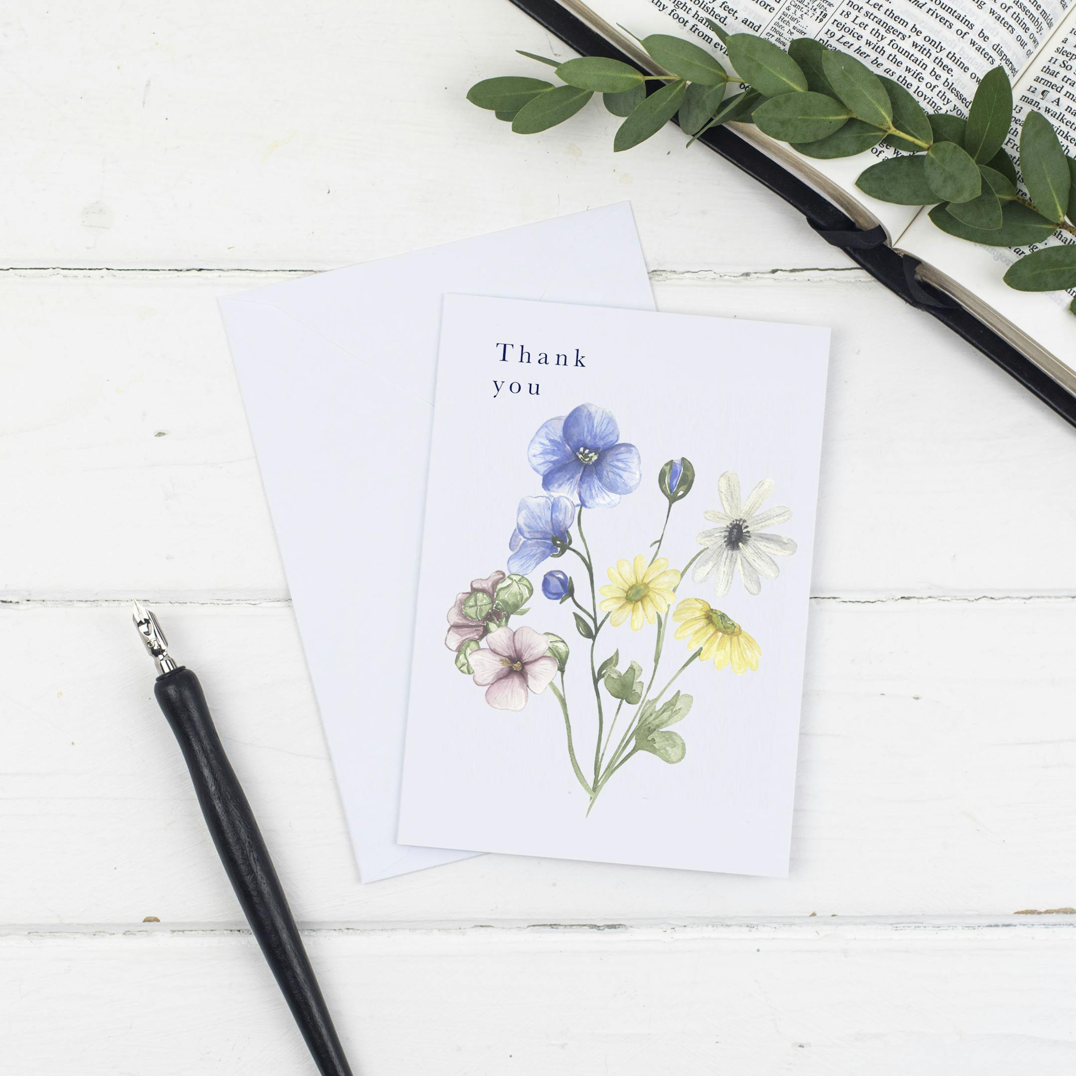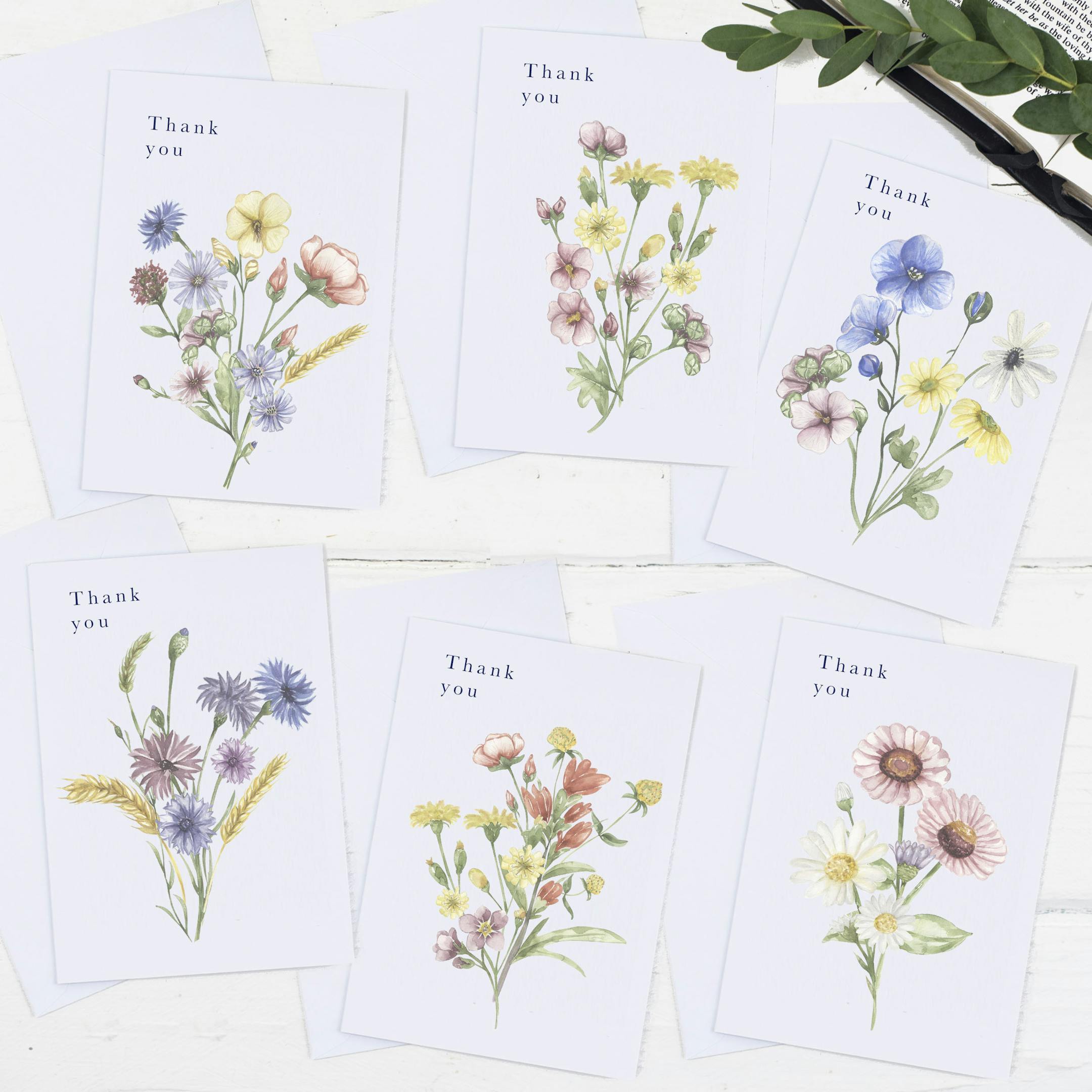 Spring Meadow Floral Thank You Greeting Cards Set of Six - 1 Thess 5:18