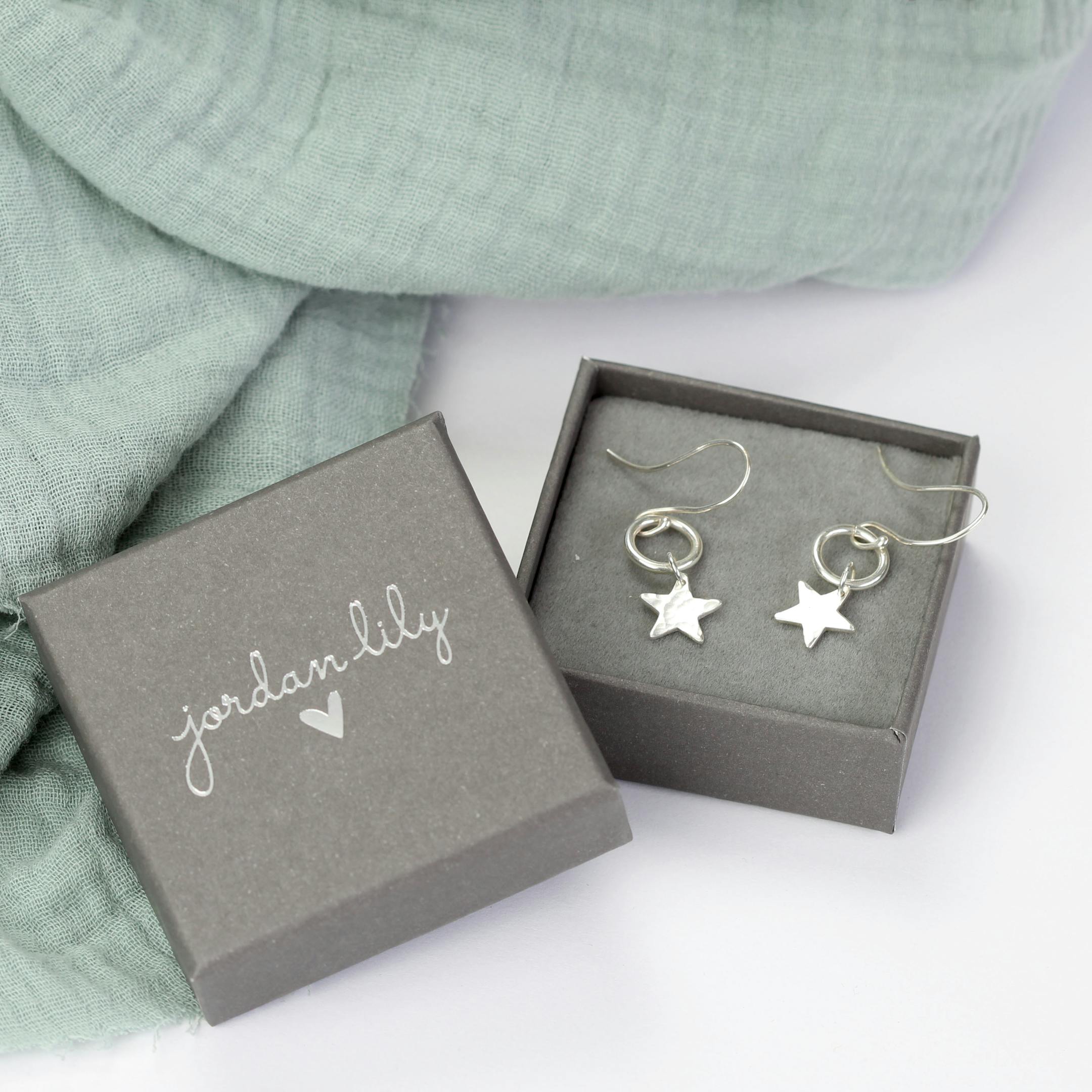 Handcrafted in my home workshop in Cornwall, these sterling silver star earrings are finished with a hammered texture, lightweight and easy to wear, they'd make the perfect gift this Christmas. Why not upgrade to my Premium Packaging for an extra special touch?