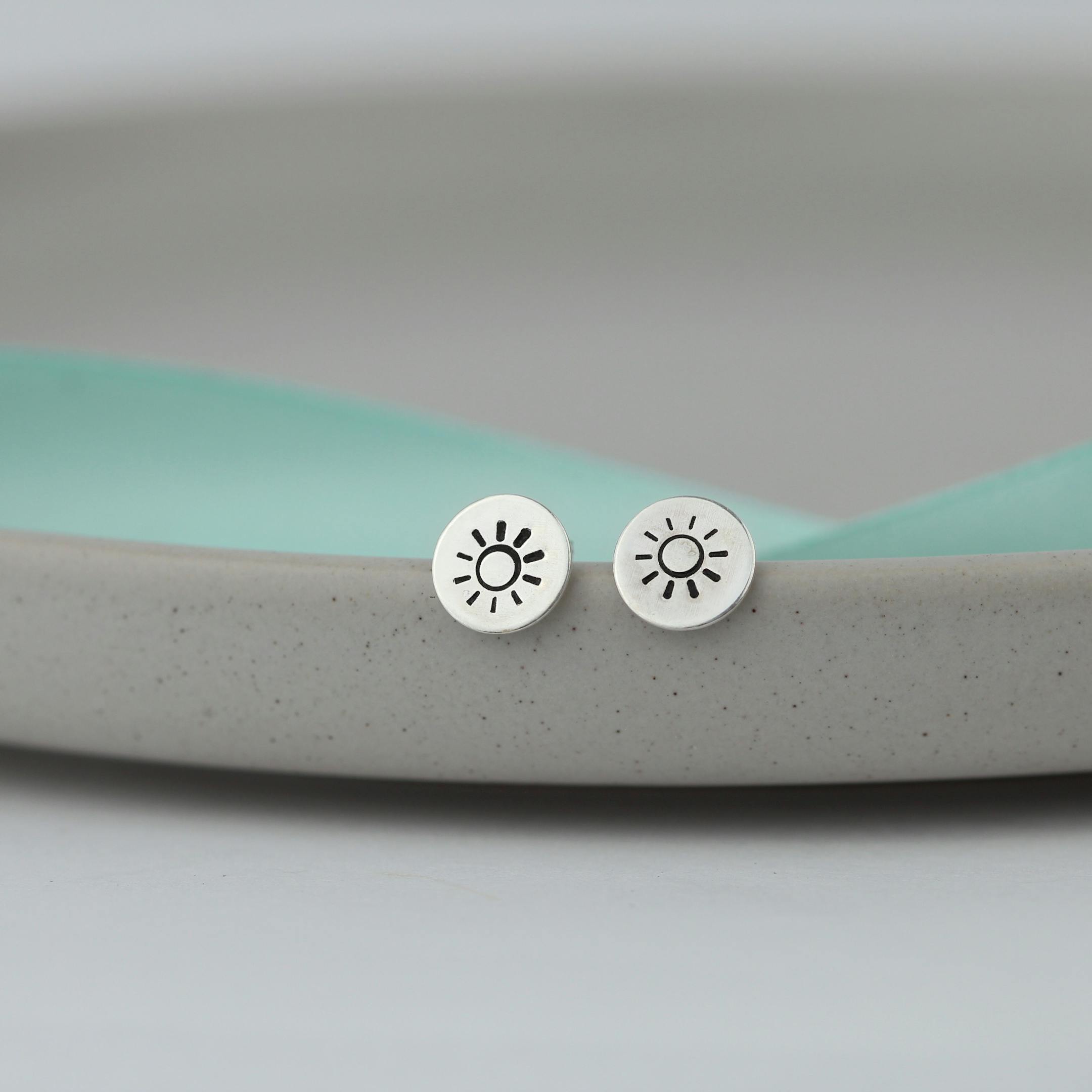 These small Sterling Silver Sun Studs are full of charm! These dainty studs are sure to brighten up someone's day. Stamped by hand and finished in my home studio in Cornwall, these gorgeous sun earrings are lightweight and super easy to wear.