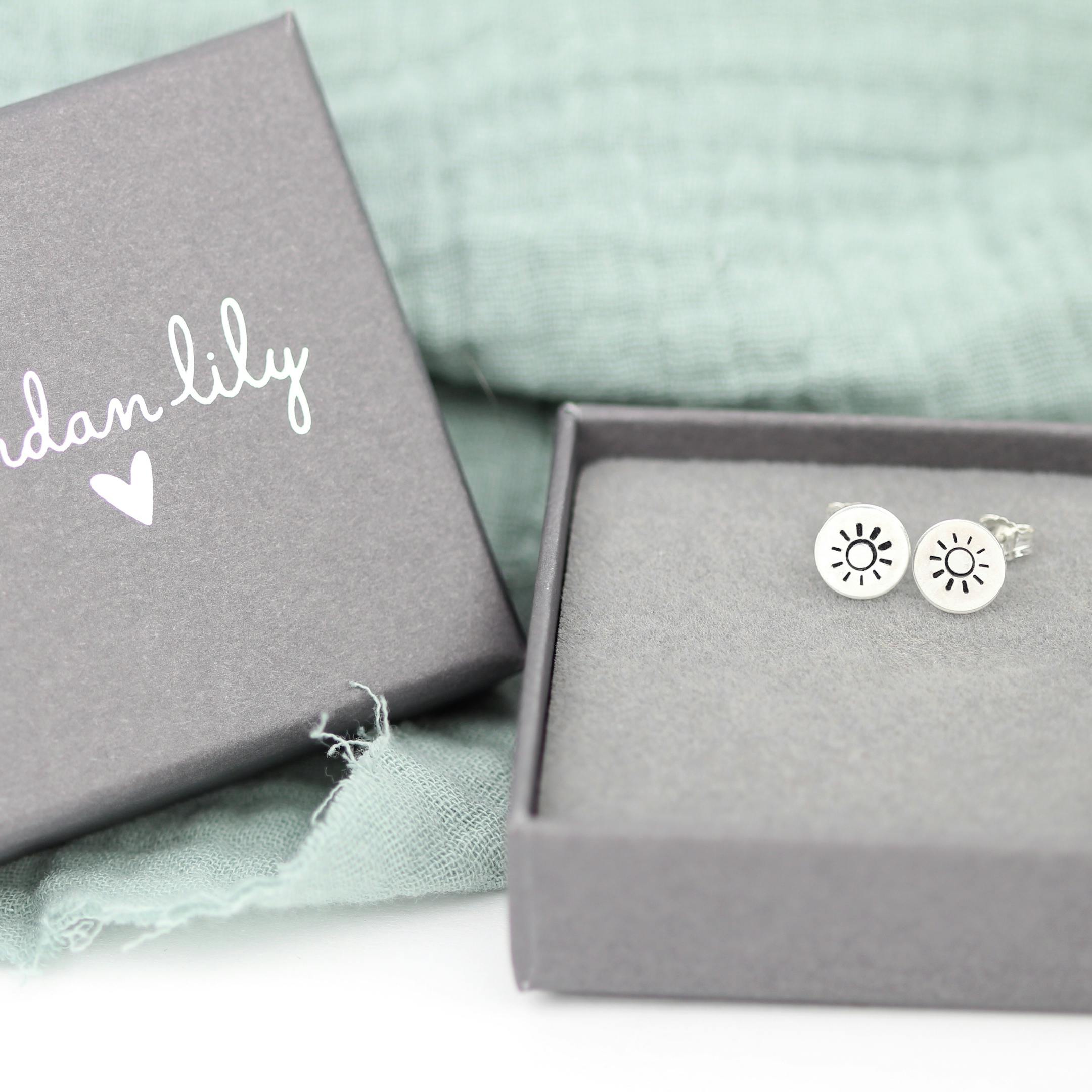 These cute sunshine earrings make such a thoughtful gift. Upgrade to my Premium packaging for an extra special touch. A lovely gift for friends, these silver stud earrings are such a lovely way of saying 'You are my sunshine!'