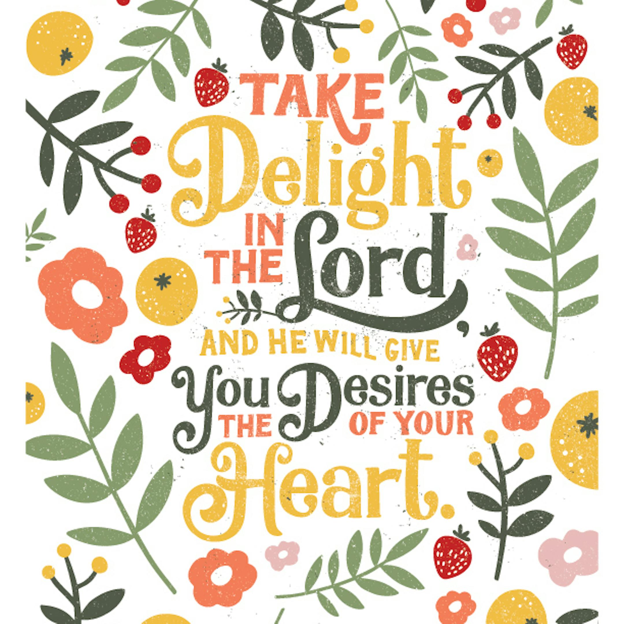 This Bible verse inspired tote bag features Psalm 37:4 as a reminder to take delight in the Lord.