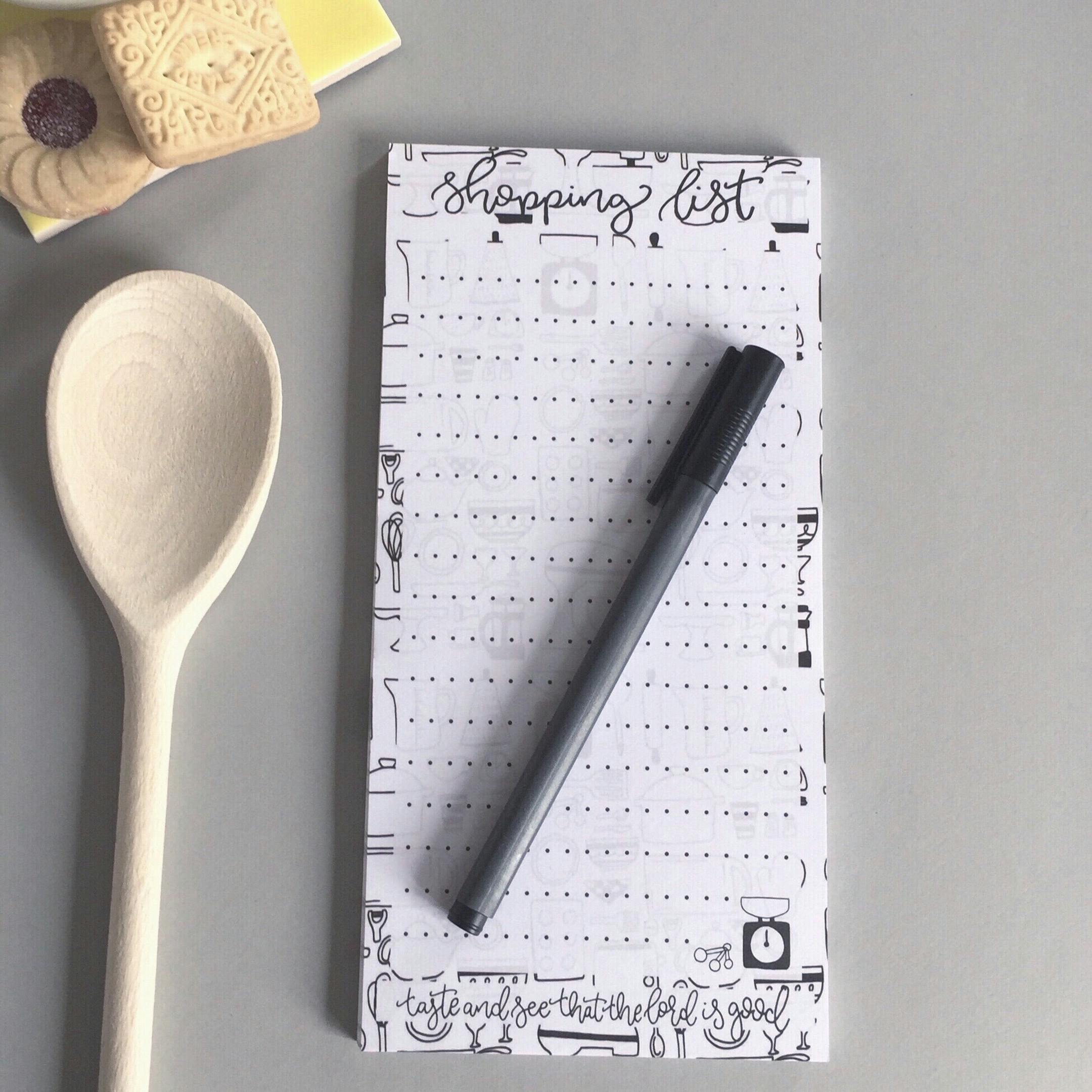 "Taste and See That The Lord is Good” this shopping list is part of a new kitchenware /stationery collaboration between AprilMade and Creative Bea.