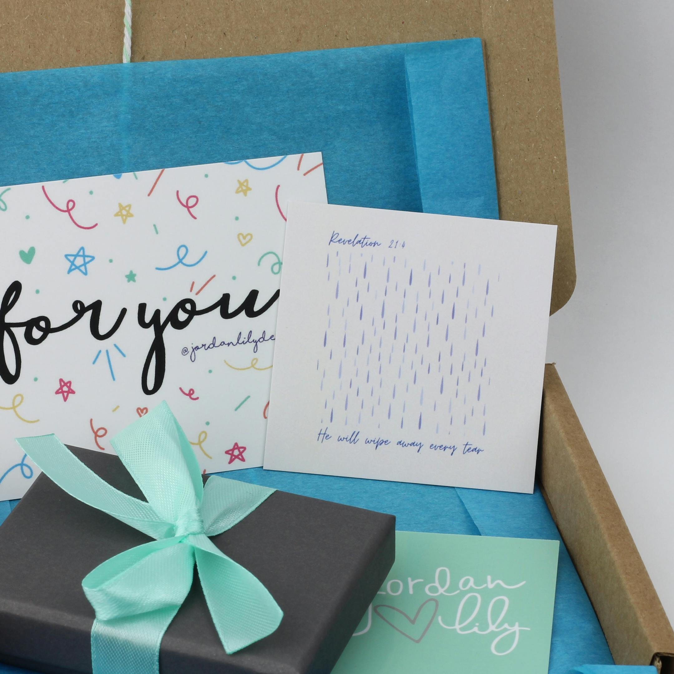 Inspired by Tears, my Teardrop Collection comes with an accompanying Bible verse card which reads: “He will wipe away every tear” from Revelation 21:4. It meets us where we are, and acknowledges the significance and healing importance of tears.