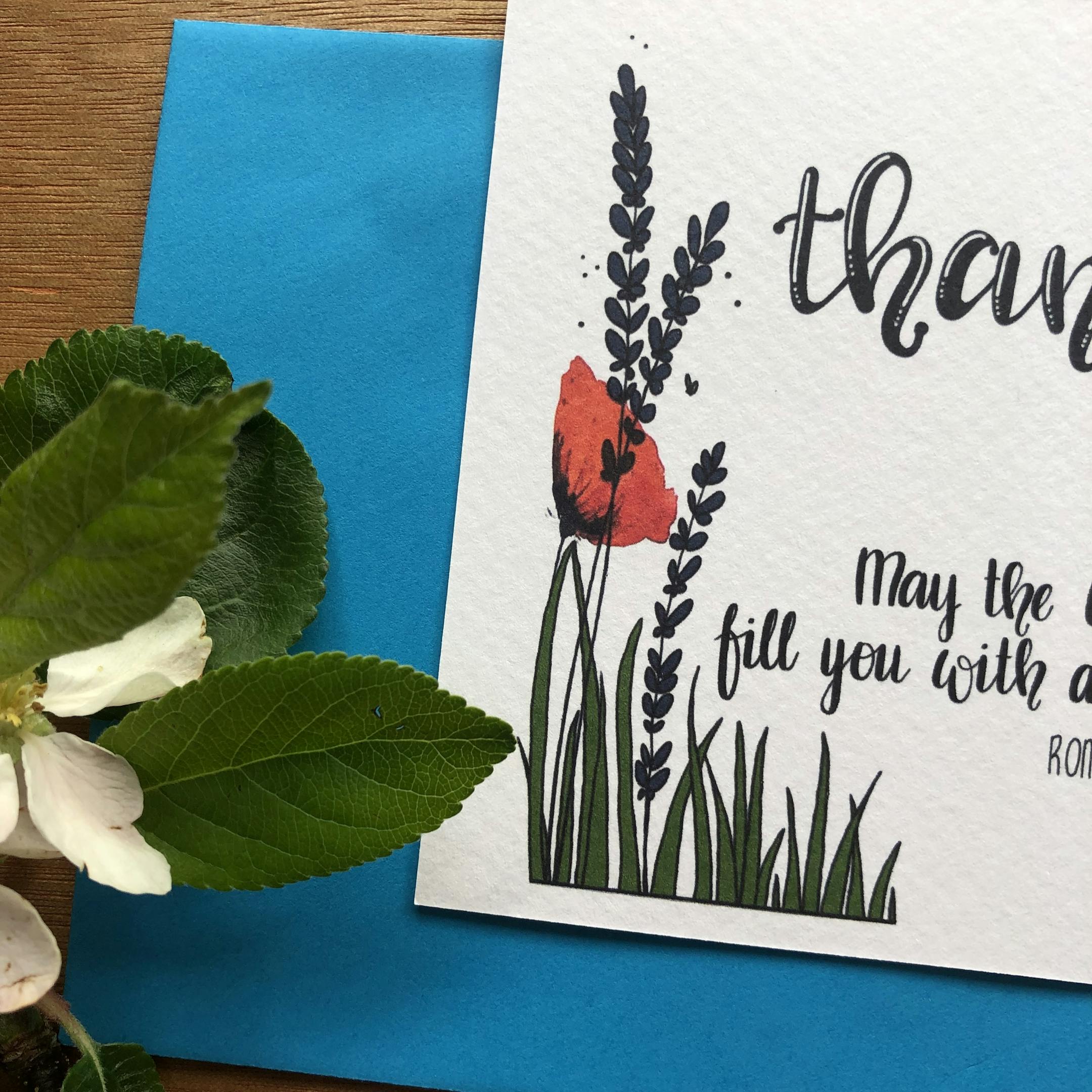 Sending this beautiful thank you card not only says ‘thank you’ but also sends a lovely blessing and encouragement with the words of Romans 15:13.