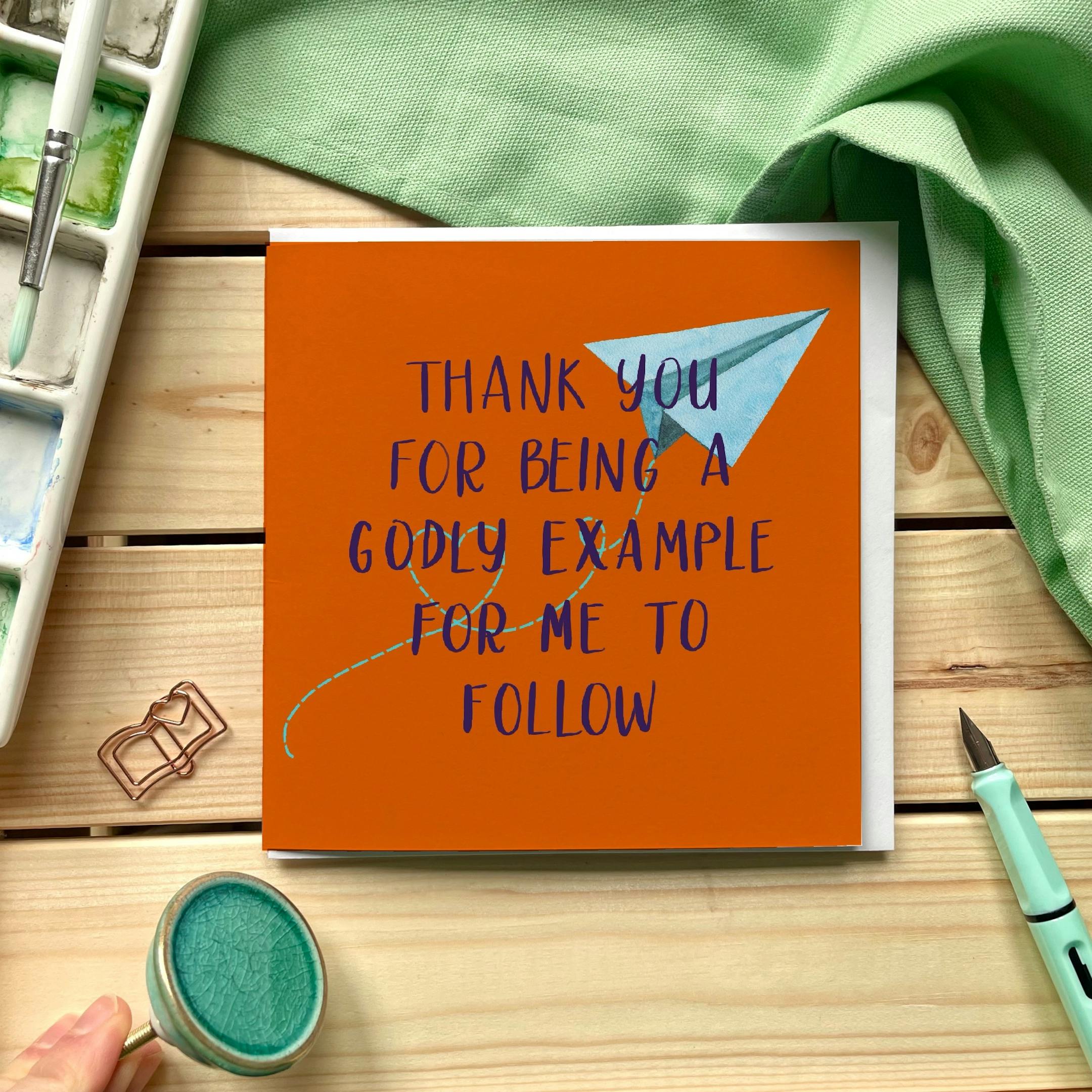 Christian card which says “Thank you for being a godly example for me to follow” - perfect for parent, godparent, teacher, pastor or mentor.