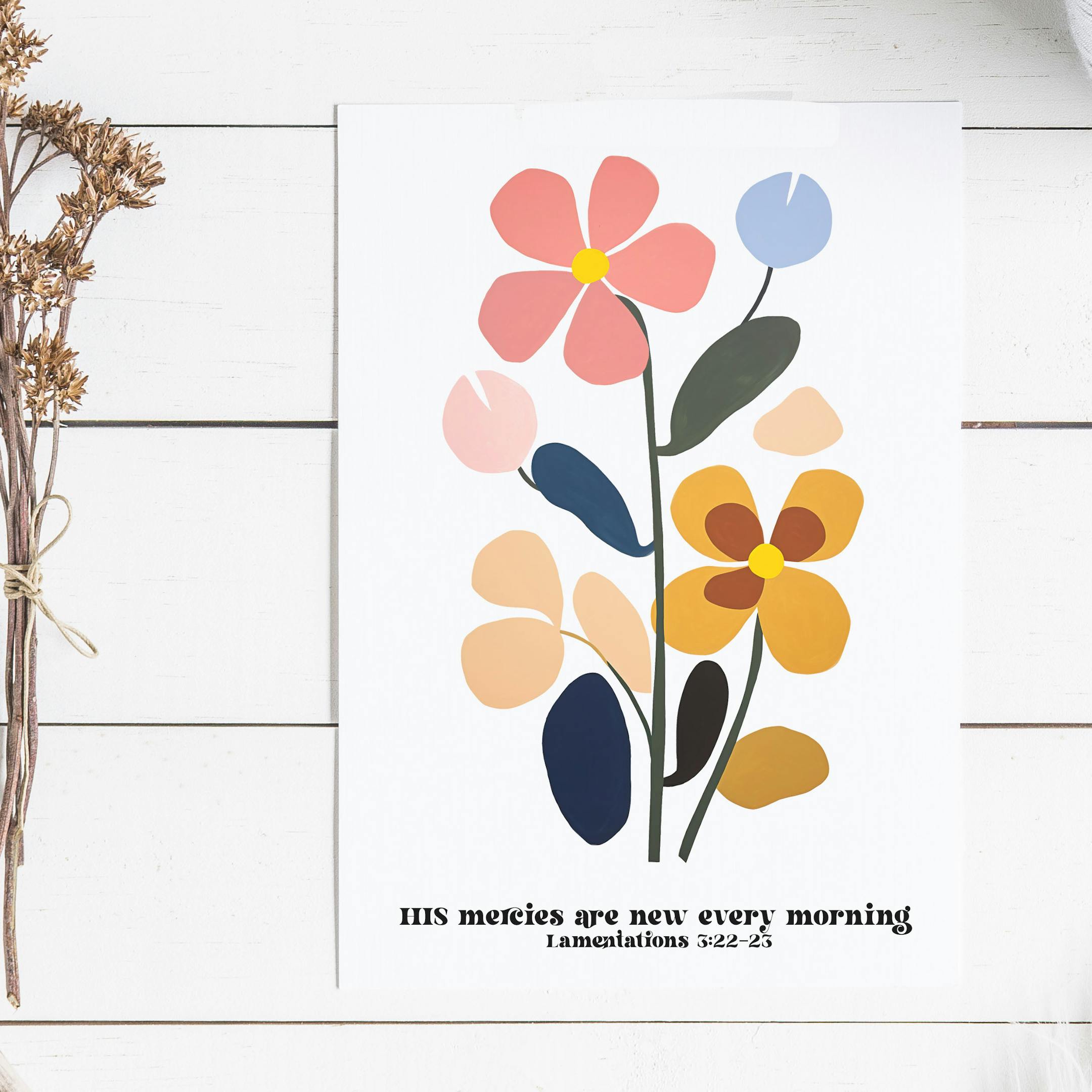 His Mercies Are New Every Morning Retro Floral Print - Lamentations 3:22-23