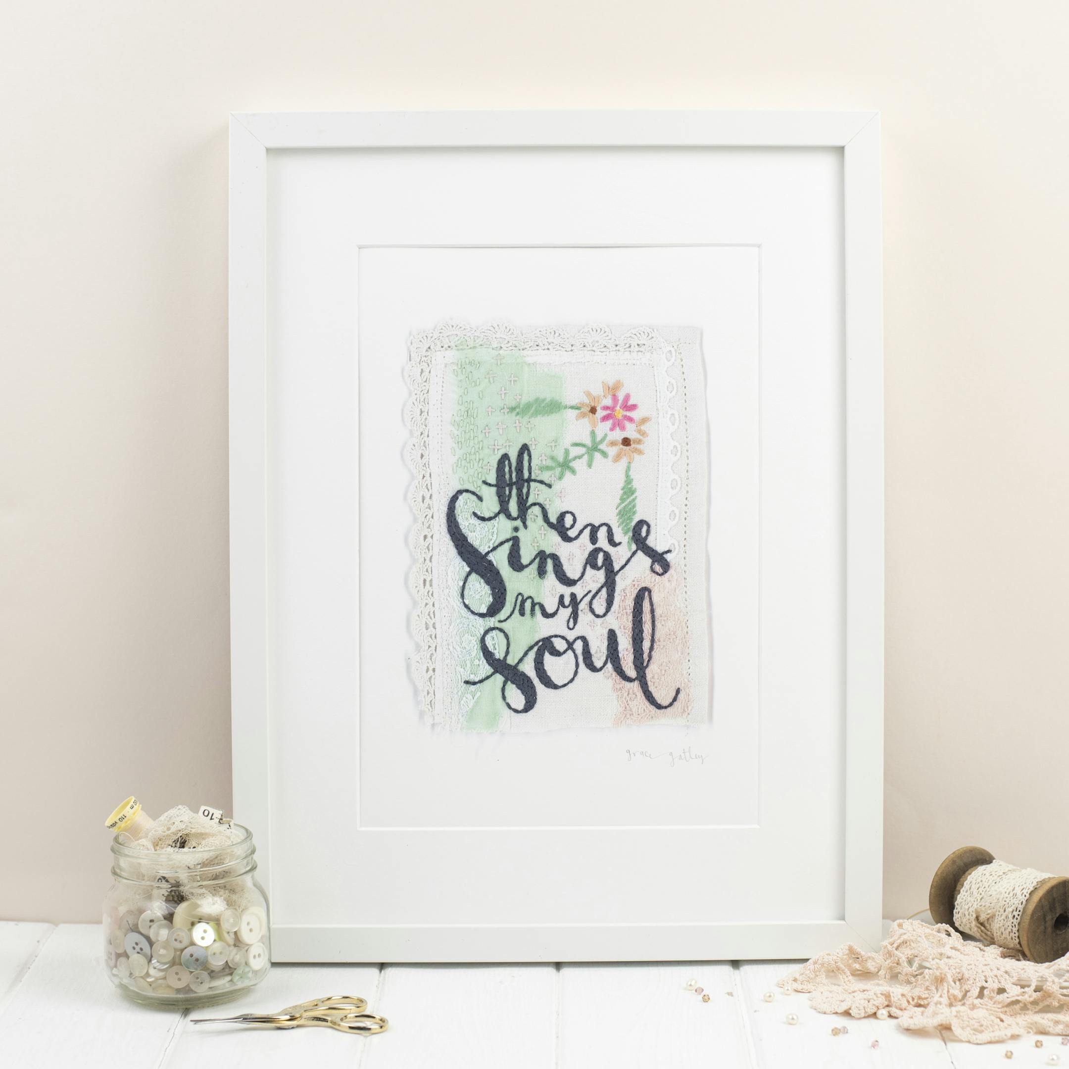 Scripture inspired textile art featuring hand embroidered bible verses created by Grace Gatley in Cheltenham, Gloucestershire.