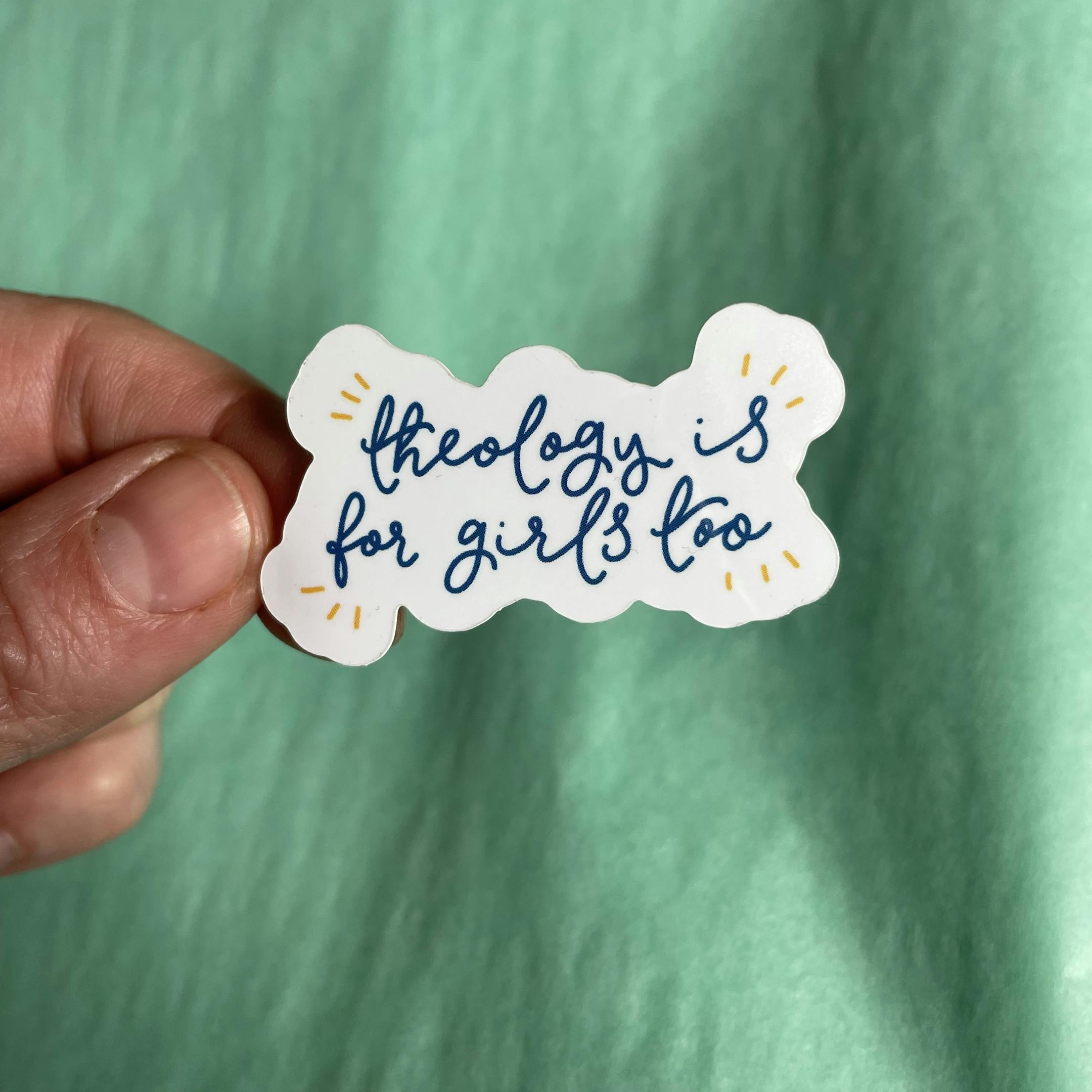 Theology is for girls too waterproof vinyl sticker. Studying the Bible and knowing what you believe is vital, and this small hand lettered vinyl sticker is a fun reminder that God's word is not limited to men, nor even to professors. Theology is for everyone. Perfect to stick on your water bottle, kindle, laptop, a notebook... wherever you fancy. This sticker is made of thick, waterproof vinyl.