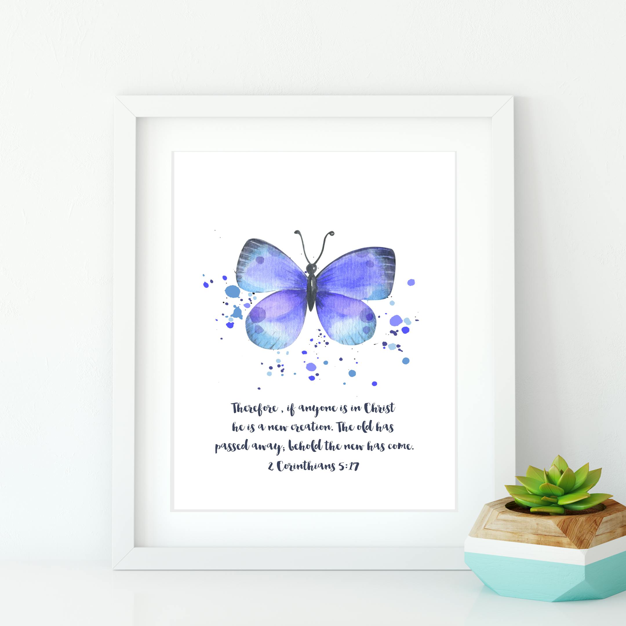 This beautiful A4 or A5 print features the encouraging words from 2 Corinthians 5:17 - 'Therefore if anyone is in Christ he is a new creation. The old has passed away, behold the new has come". This print features a beautiful watercolour butterfly and stunning lettering.