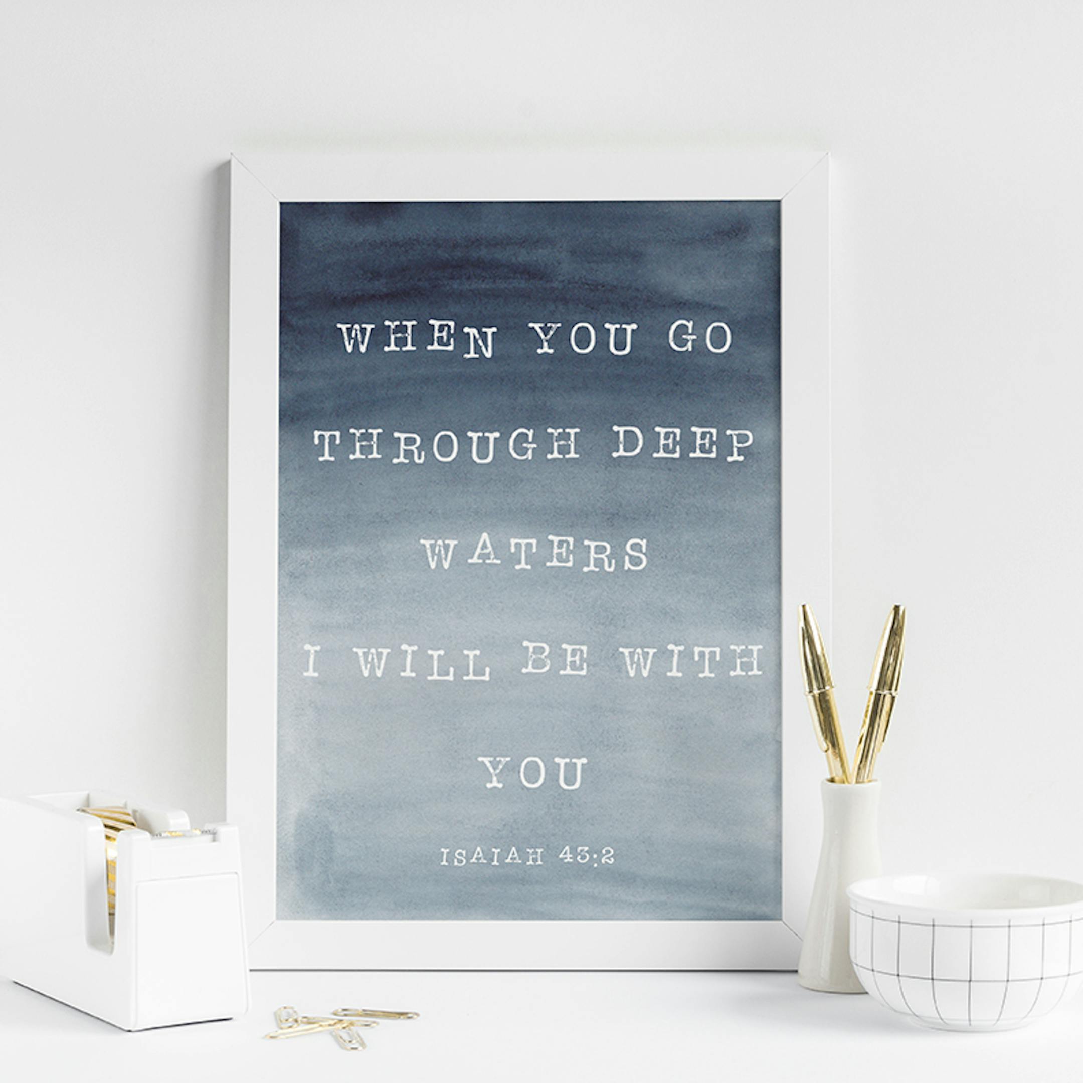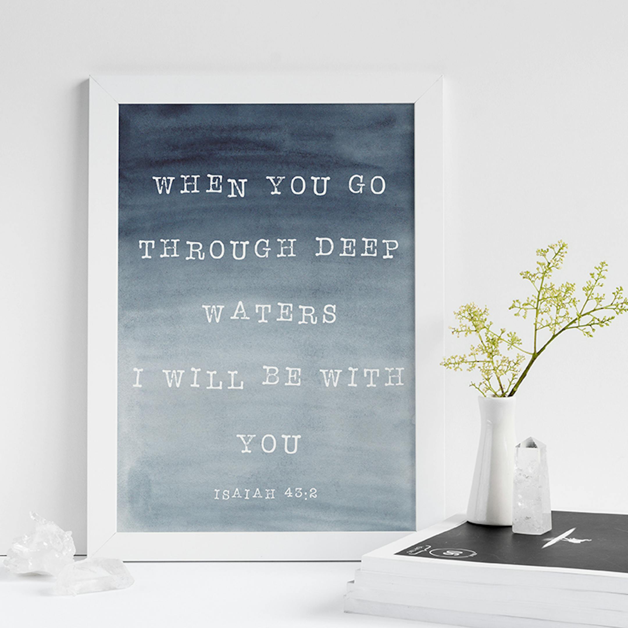 When You Go Through Deep Waters Isaiah 43:2 - Bible Verse Art Print