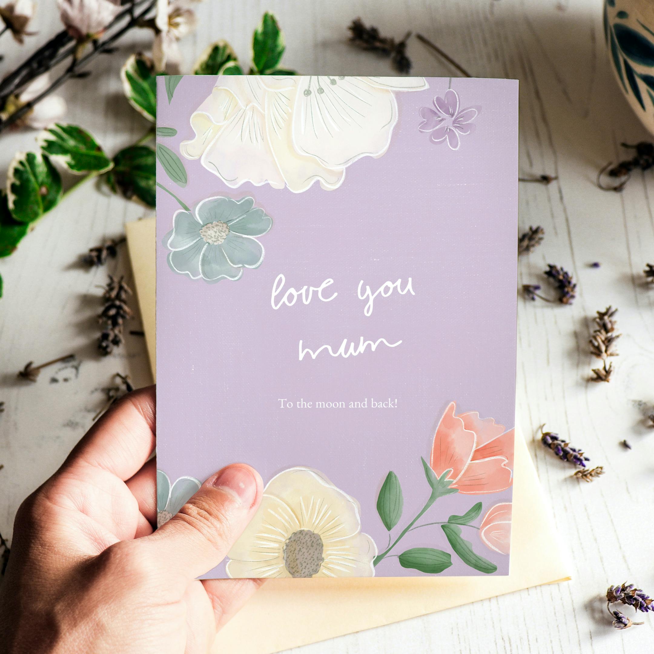 • "Love you Mum" greetings card (Write your personalised message in the box below)