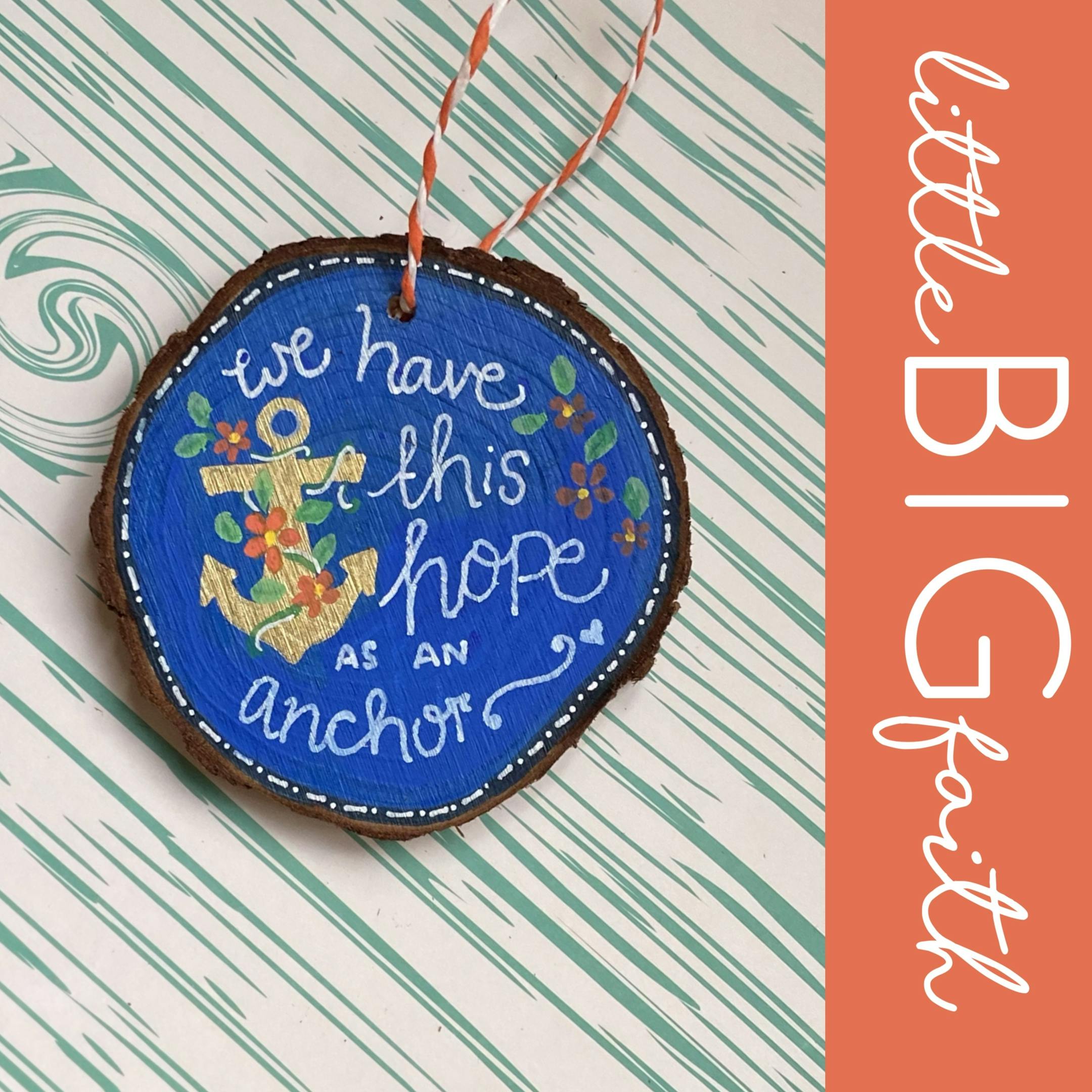 Wood slice hand painted decoration -hope anchor